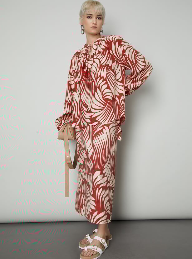 Make a breezy style statement with this printed wrap long skirt, featuring a side tie-up detail for a flattering, adjustable fit. The flowy silhouette brings movement and elegance to your everyday look.