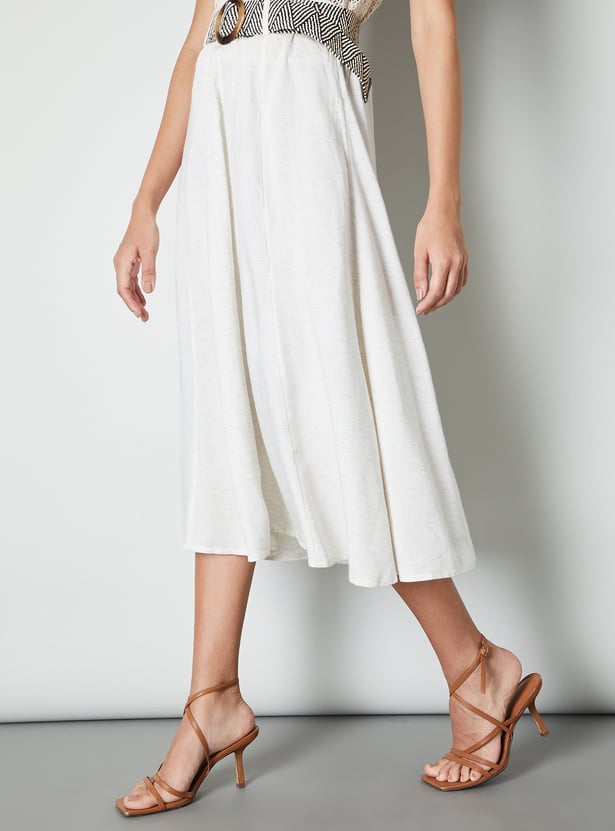Women Solid A-line Belted Skirt