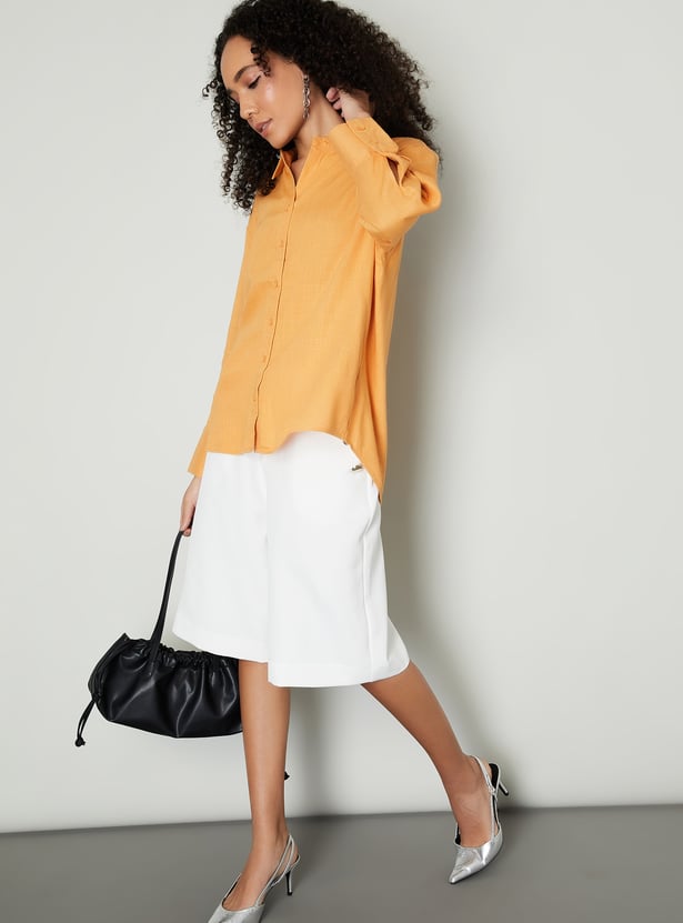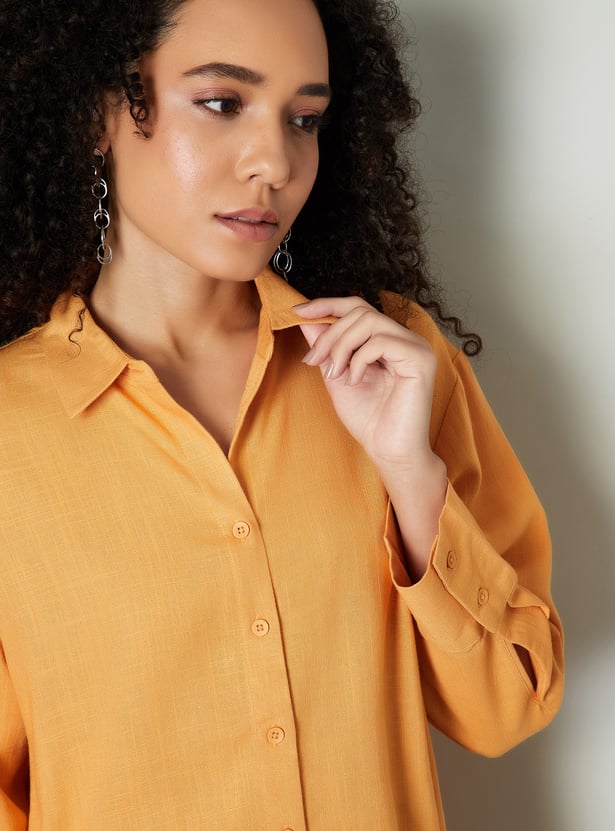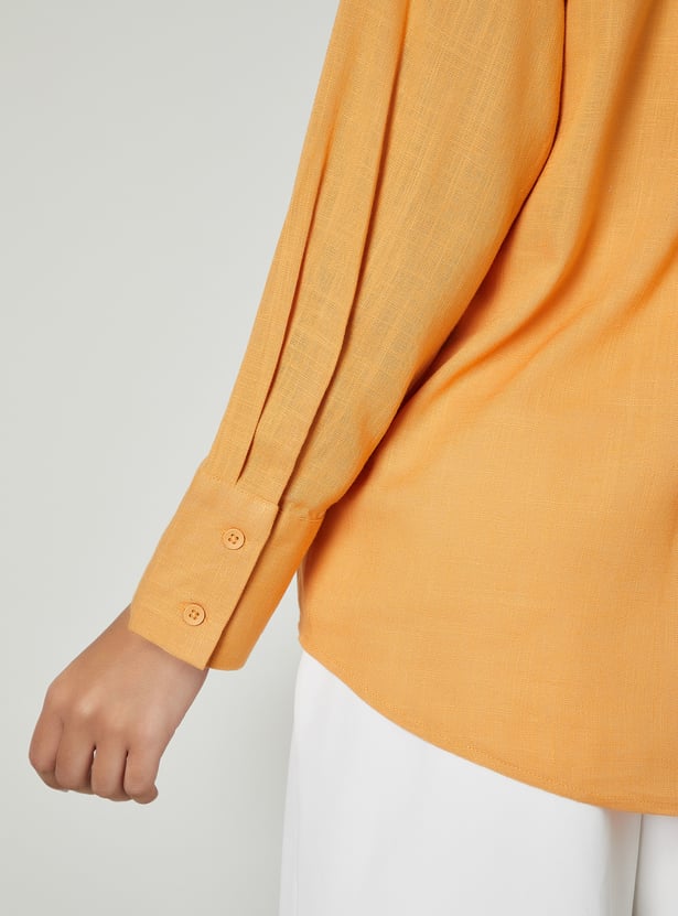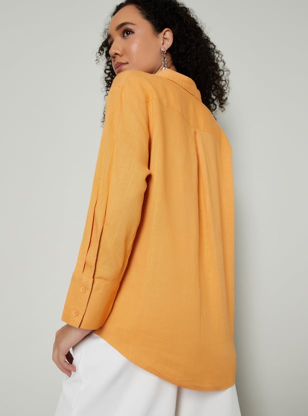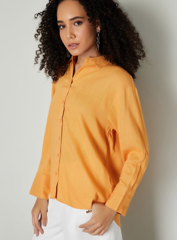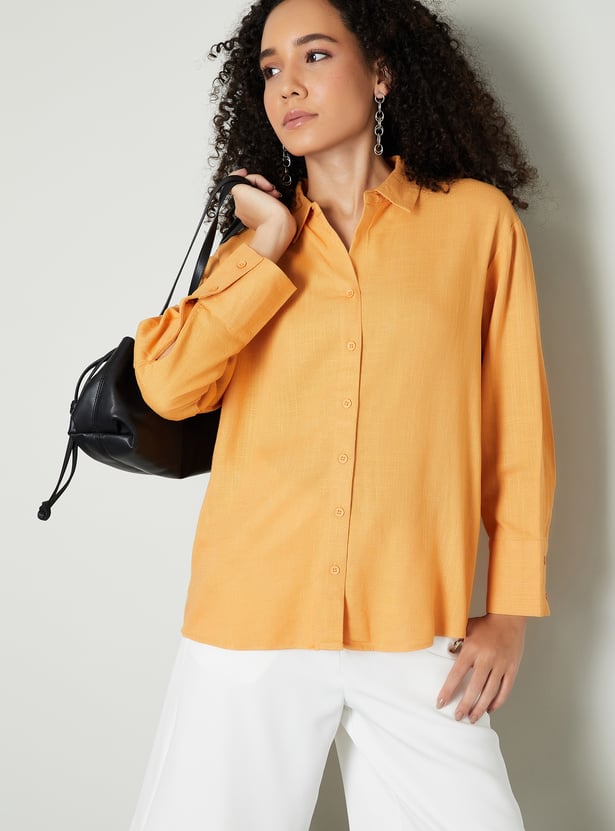 Elevate your wardrobe with this textured shirt featuring a spread collar and button placket. Full sleeves with button cuffs add a sharp, polished touch, perfect for both casual and semi-formal occasions.
