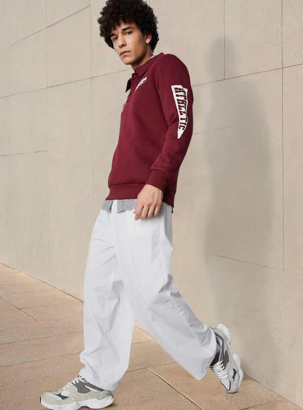 Whether you're out for a casual meet-up or just vibing with friends, this sweatshirt keeps it fresh and easy. The full sleeves with typography, polo collar, and ribbed trim give it that retro, athletic edge, while the print on the chest adds to the style.