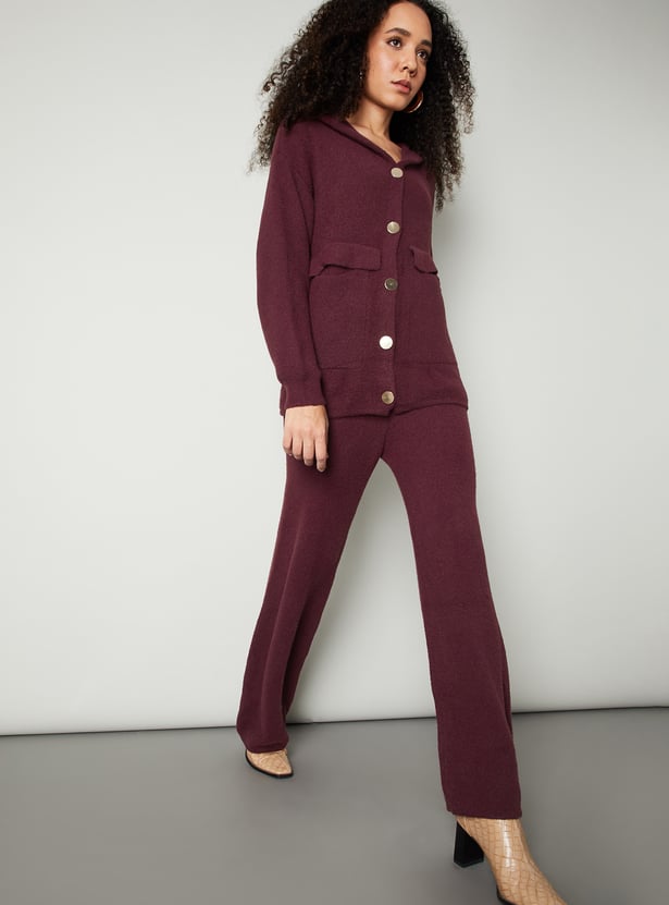 Stay comfortable and stylish with these knit wide-leg trousers, perfect for relaxed yet chic outfits. Featuring an elasticated waist for a secure and flexible fit, they offer both ease and elegance.