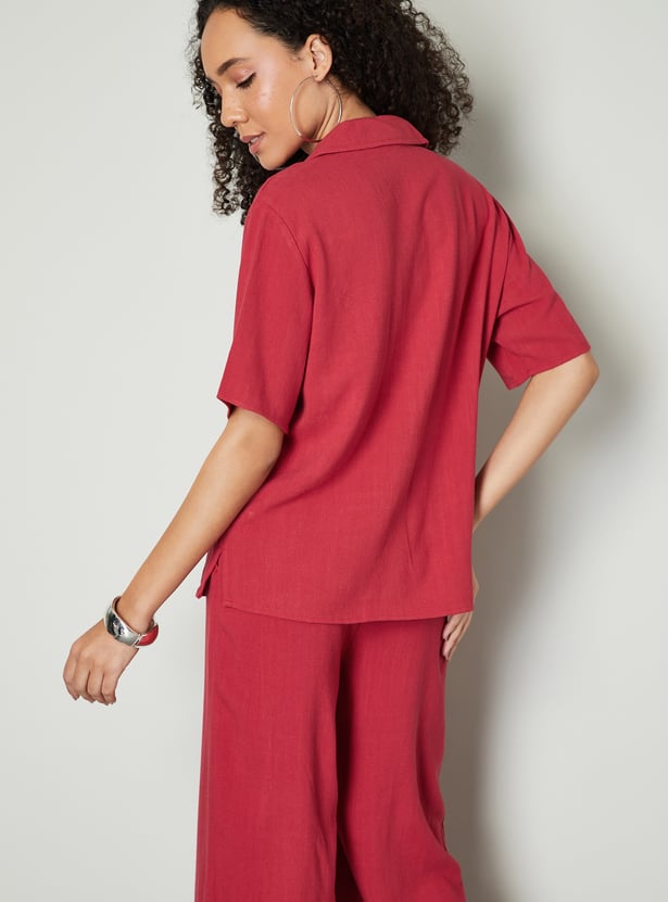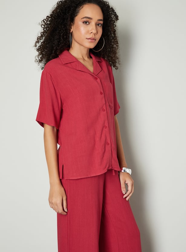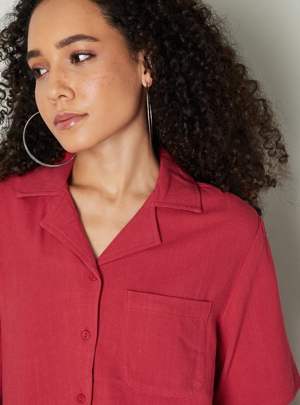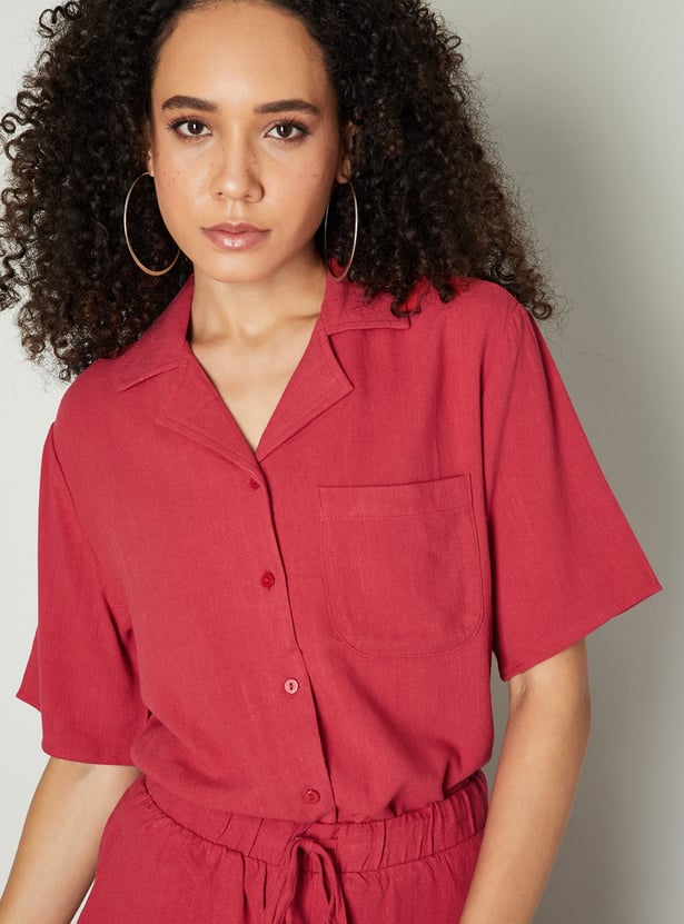Stay cool and stylish with this solid resort shirt. Featuring a resort collar, button placket, and half sleeves, it combines comfort and effortless charm for a laid-back vibe.