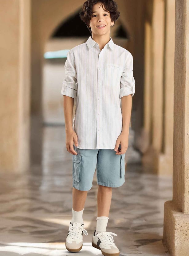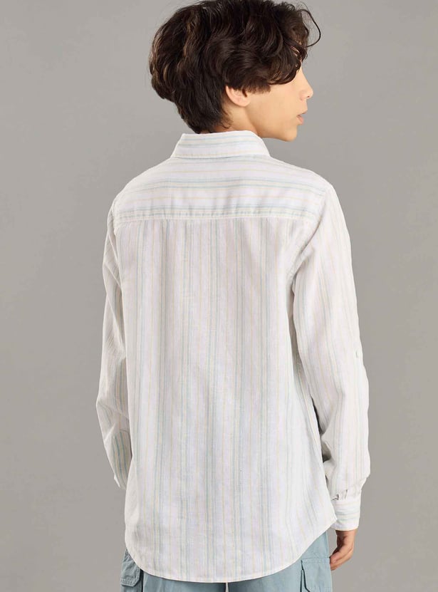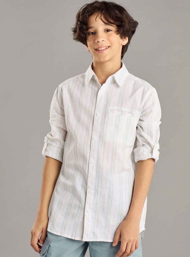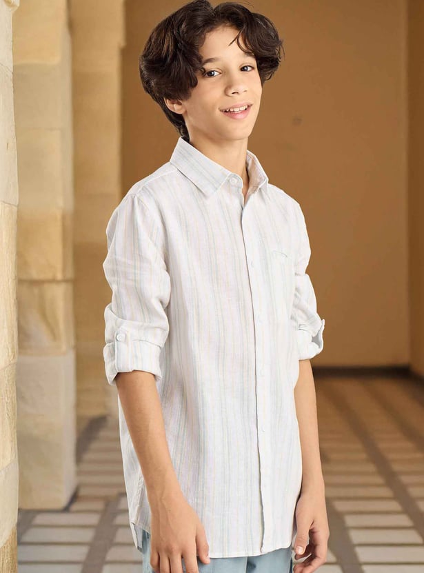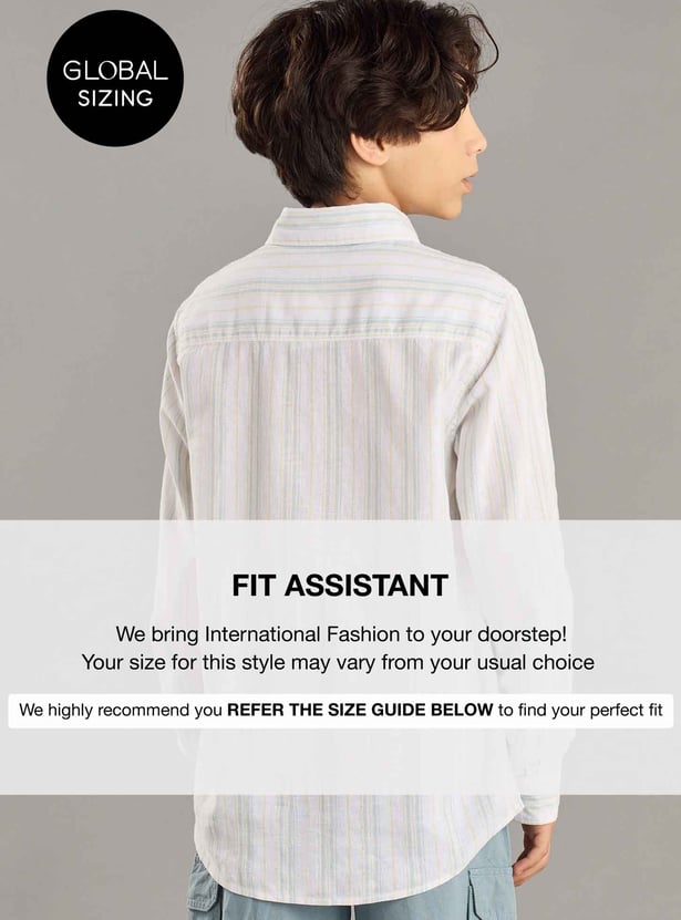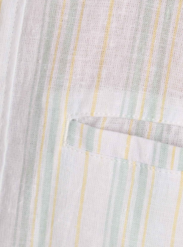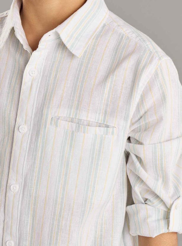 Add a refined touch to your wardrobe with this striped shirt, featuring a classic spread collar and full sleeves with button cuffs. The welt pocket enhances its tailored look, making it a perfect blend of style and function.