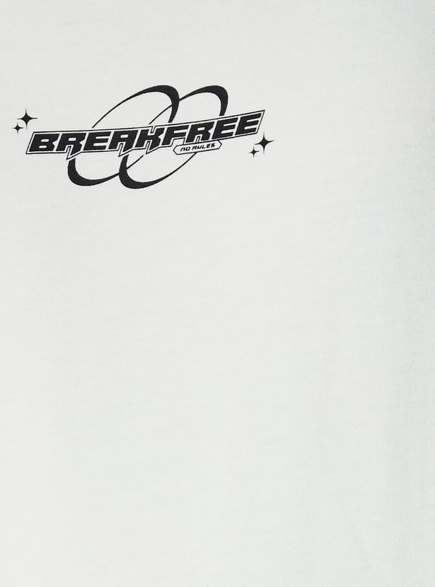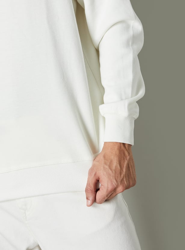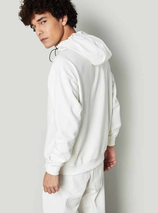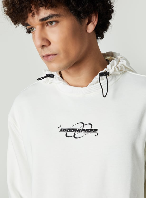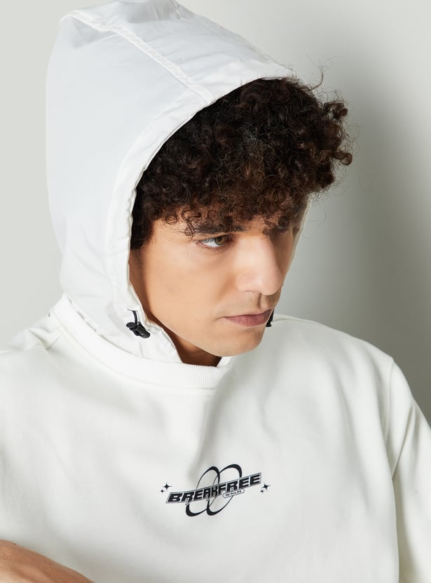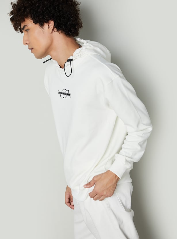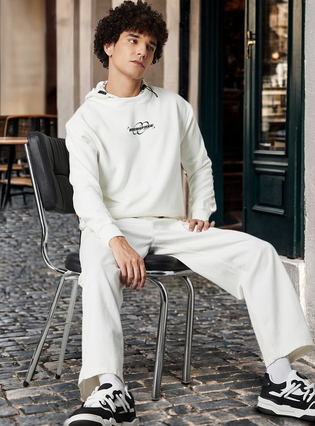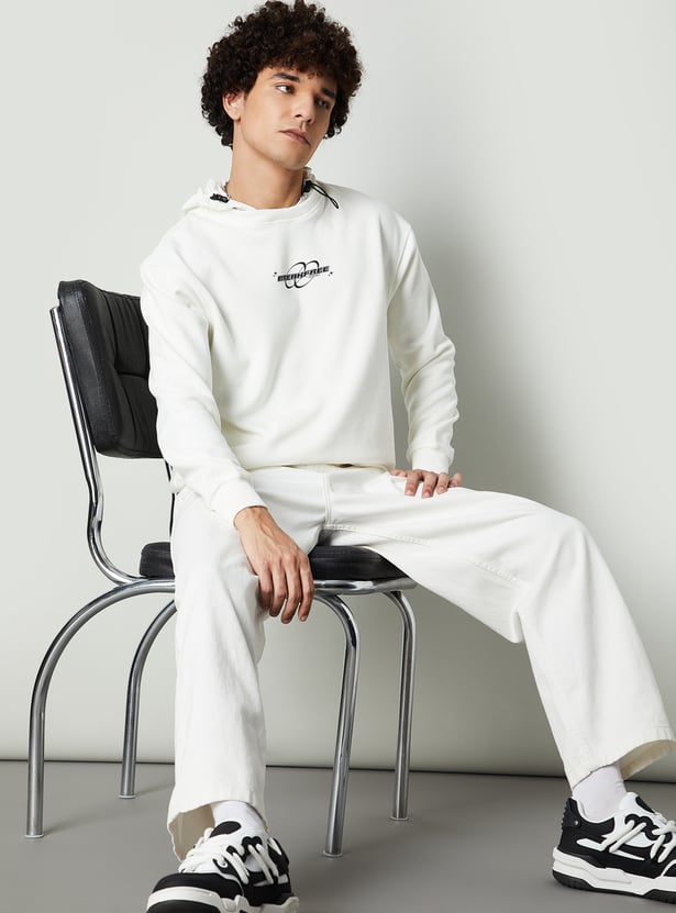 Keep it fresh and bold with this sweatshirt. The hood with a drawcord adds that extra edge, while the chest print adds a pop of style. The full sleeves and ribbed trim give a cosy look.