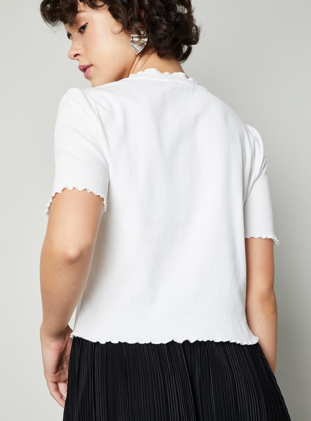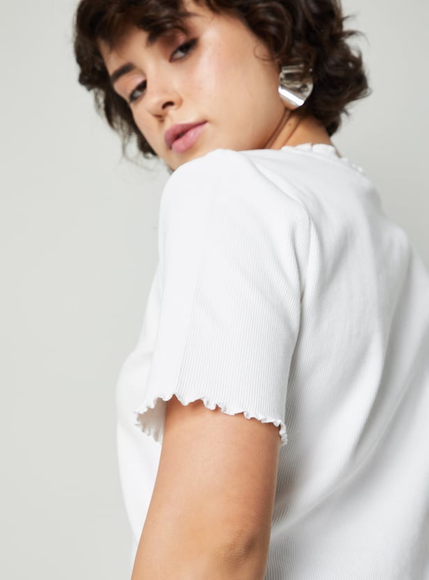 Women Ribbed Top with Lettuce Edge