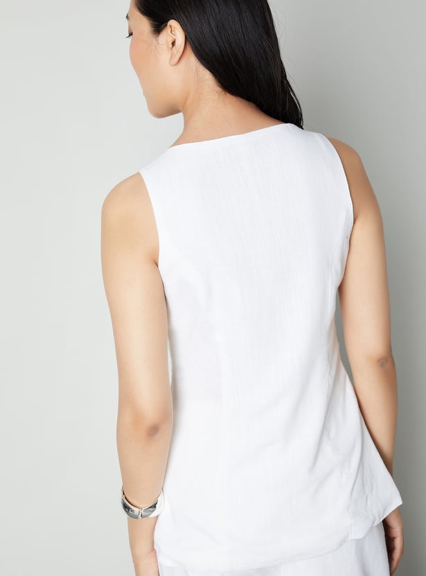 Sharpen your look with this solid waistcoat, featuring a square neck, button closure, and a sleek sleeveless design. Tailored to elevate any outfit, it's a versatile layering piece for a polished finish.