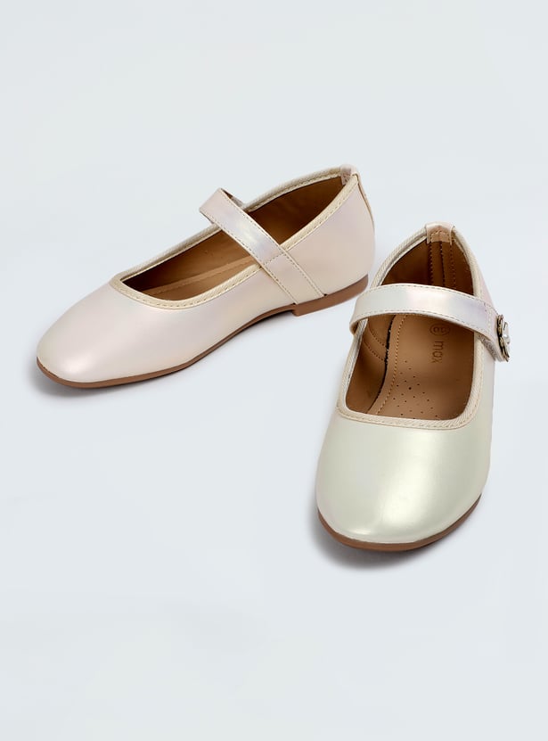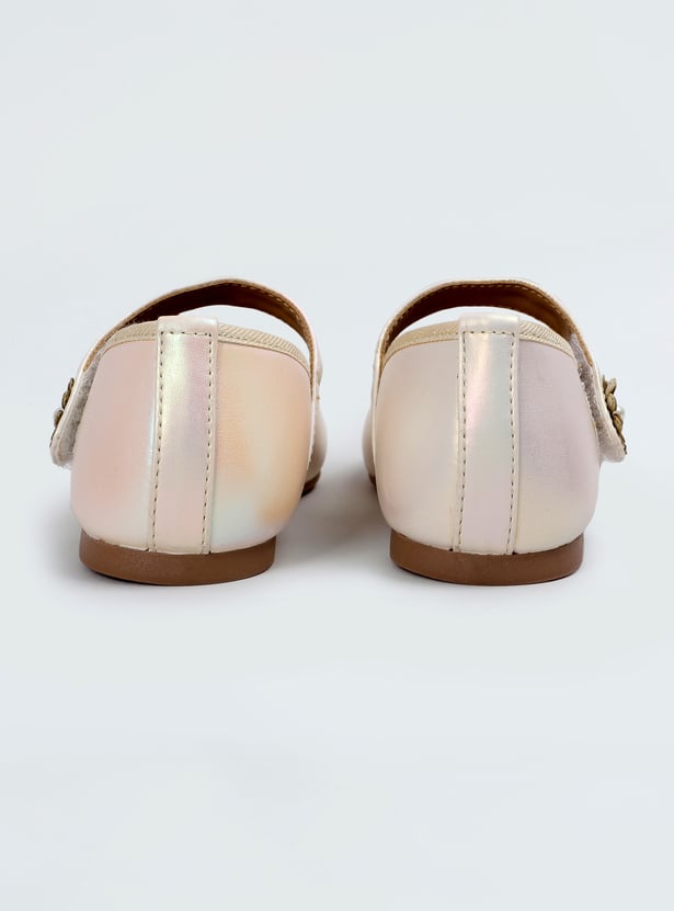 She'll shimmer and shine with this pair of ballerinas. Featuring a metallic upper, a midfoot strap with a charm, a padded footbed, and a durable outsole, they combine style and comfort perfectly.