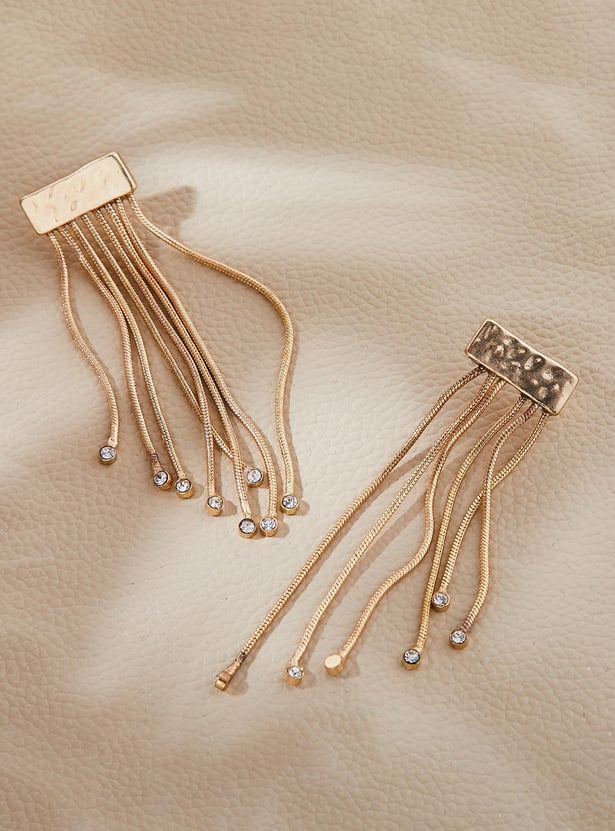Make every outfit style an elegant yet comfortable one with this pair of earrings. It flaunts embellishments and a dangler silhouette. It is secured with a post and back closure.