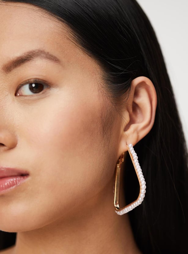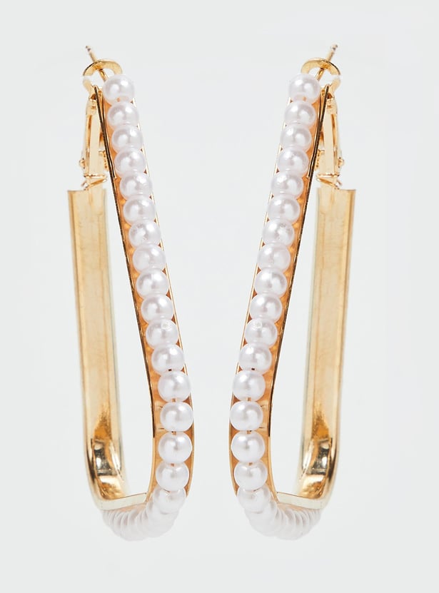 Level up your outfit with this pair of hoop earrings. It is designed with an embellished surface and comes with a latch back closure.