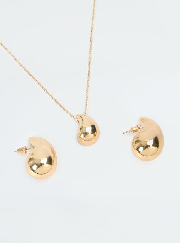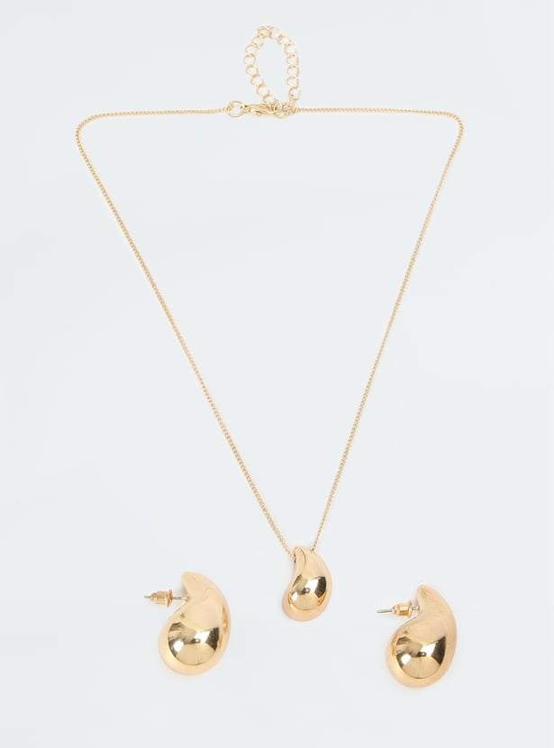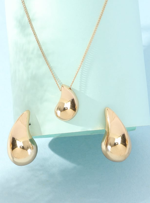 Look trendy and chic in this set. It has a chain with a teardrop pendant and a lobster clasp. The drop earrings are secured with a post and back closure.