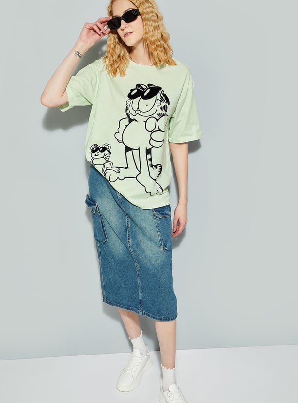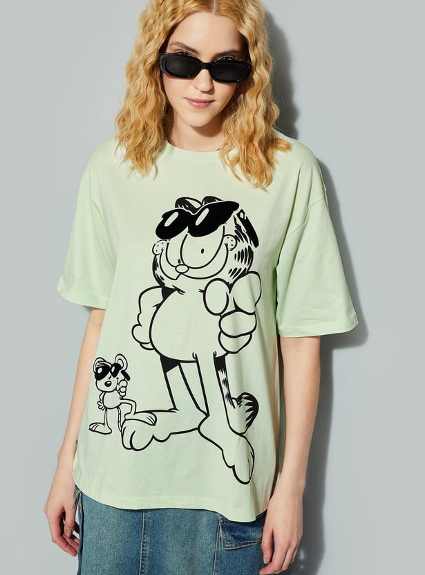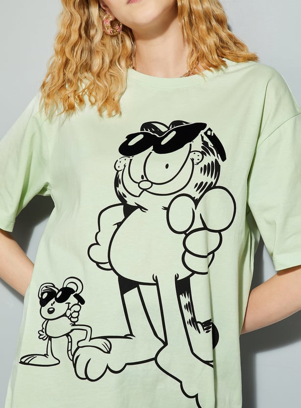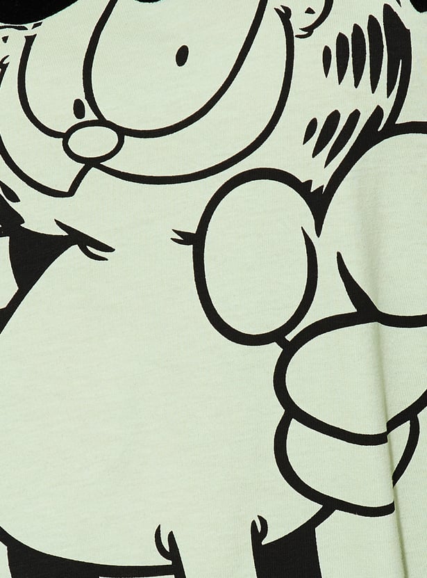 Unleash your inner chill with this T-shirt. Featuring a playful Garfield graphic, this tee is all about relaxed, carefree vibes. With drop shoulders and half sleeves, it gives you that effortlessly cool, oversized fit.