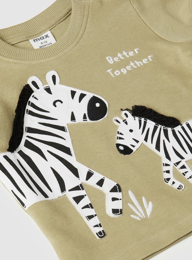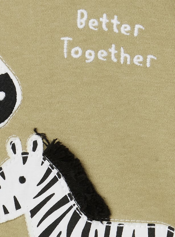 This appliqué shorts set is all about easy comfort with a fun twist. The T-shirt features a classic crew neck and half sleeves, while the matching shorts come with a drawstring closure and handy pockets for everyday ease