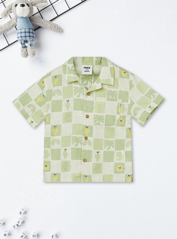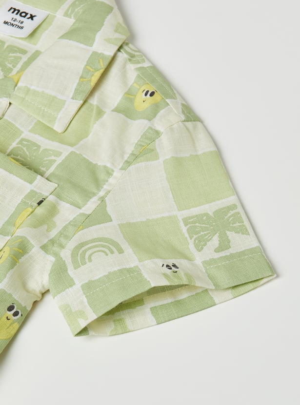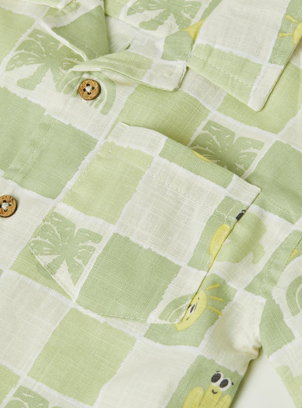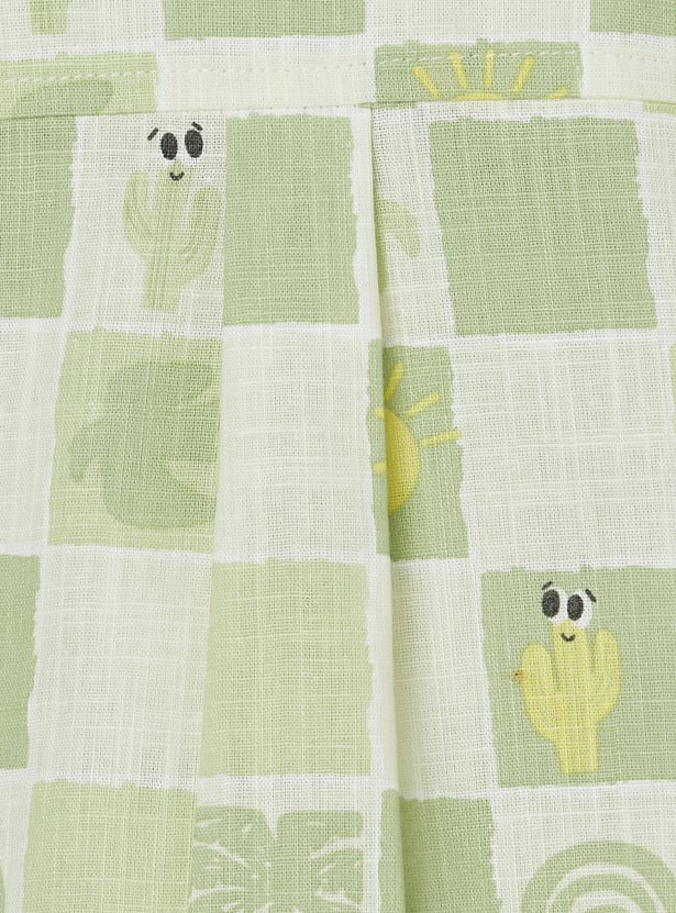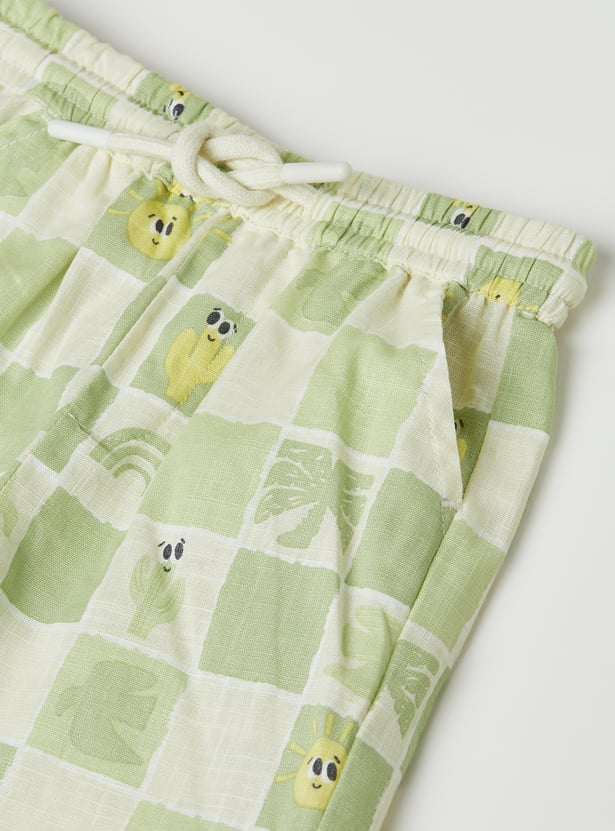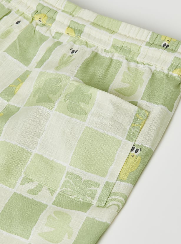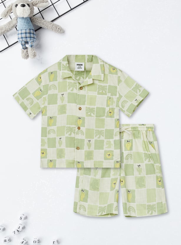 Smart and casual, this checked shorts set includes a shirt with a resort collar, button closure, and half sleeves for a relaxed yet polished look. It is paired with matching shorts featuring a drawstring closure and practical pockets.