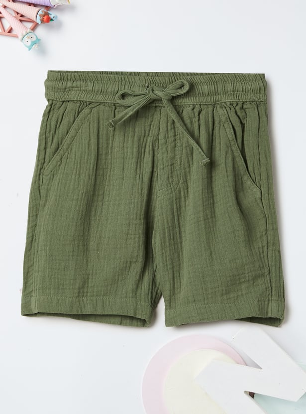 Get ready to stay cool and stylish in these crinkled shorts! Featuring a drawstring closure for a comfortable, adjustable fit and insert pockets for added convenience, they are perfect for casual outings or relaxed days.