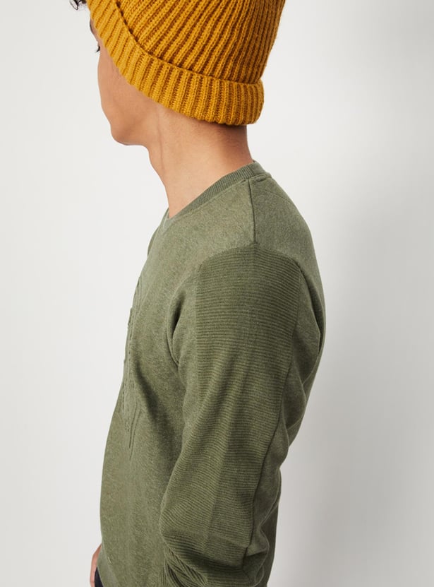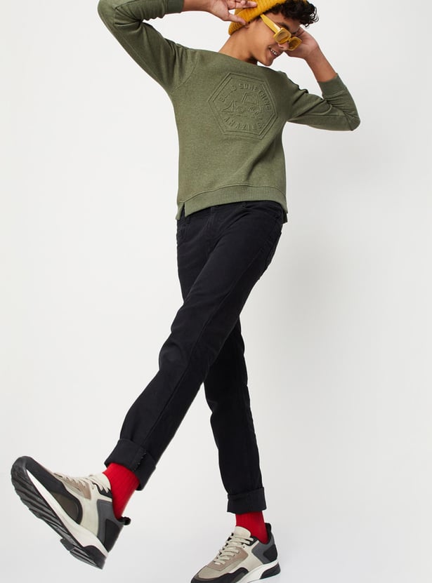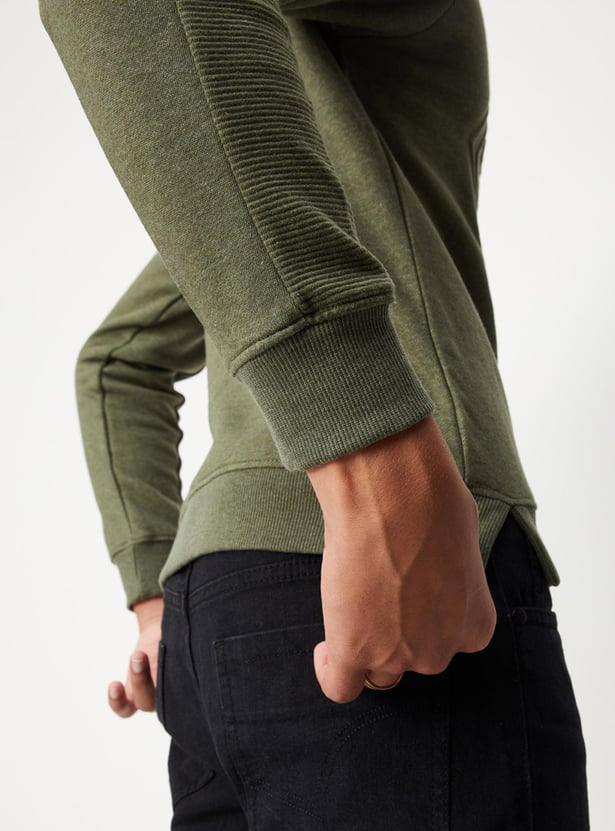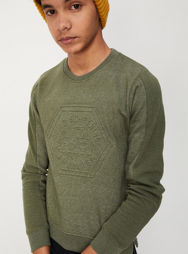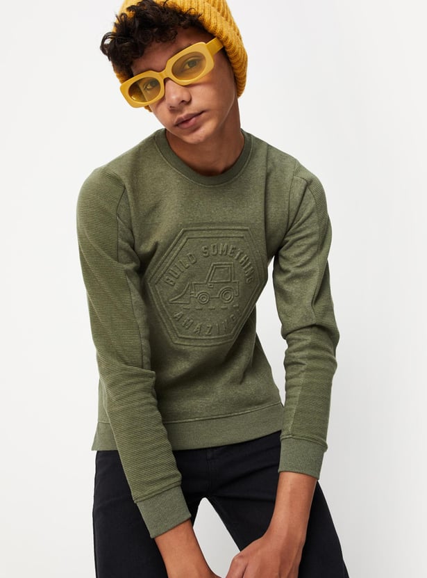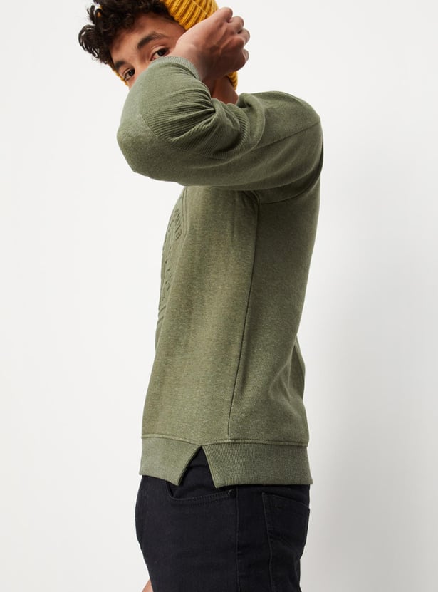 Cure his winter blues with this pullover sweatshirt that is highlighted with embossed detailing at the chest. It featured a crew neck, long sleeves with ribbed panels, and side slits at the hem.