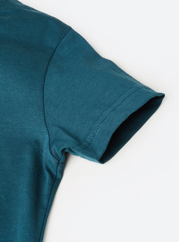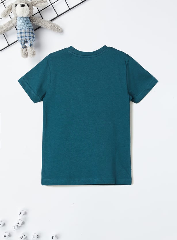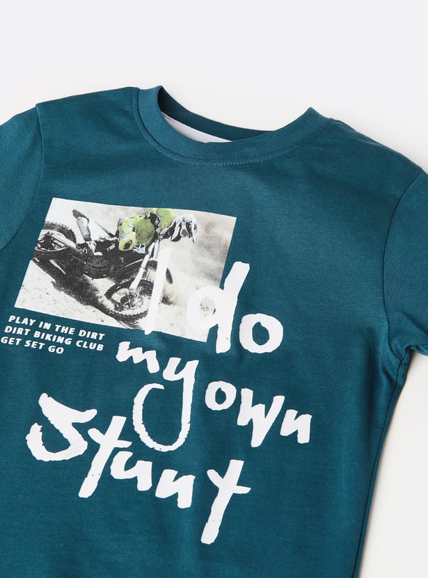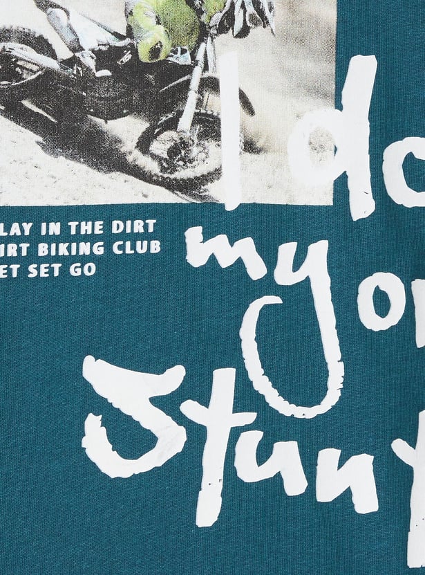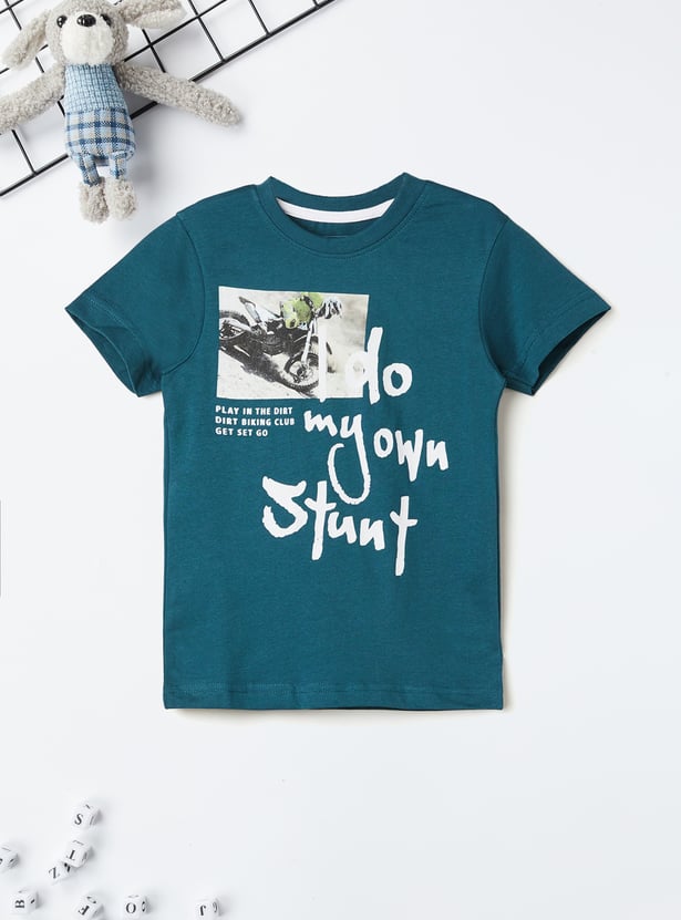Add a fun twist to your casual wardrobe with this printed T-shirt. Featuring a crew neck, half sleeves, and a straight hem, it offers a comfortable and stylish fit.