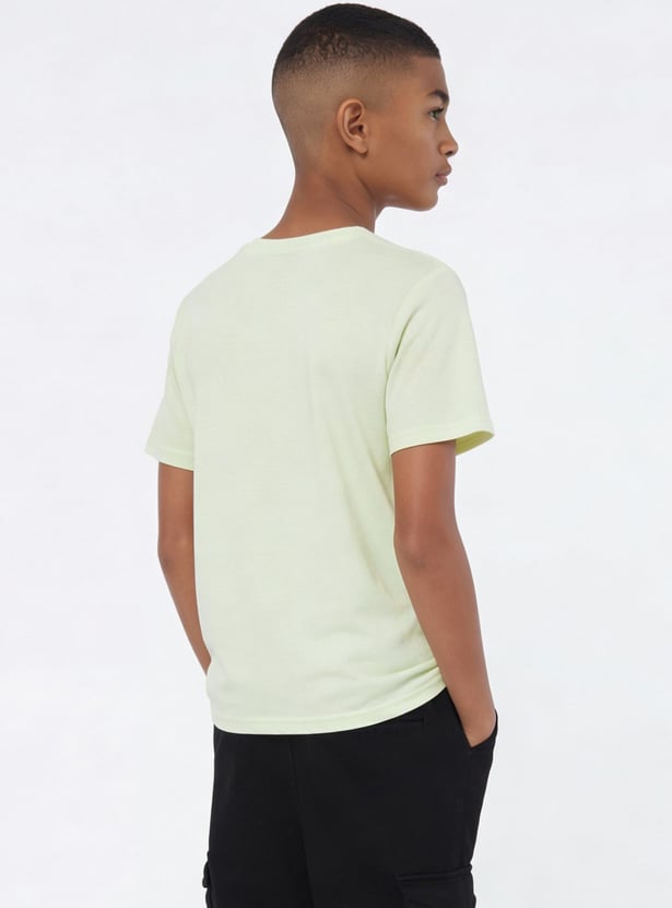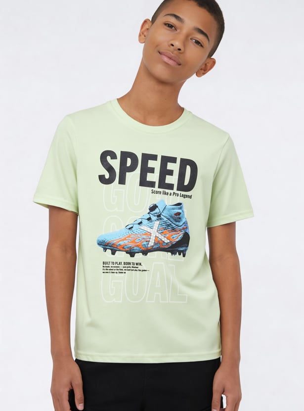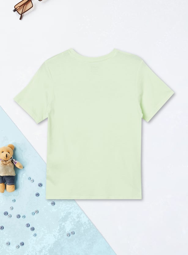 A perfect addition to your kid's summer collection is this T-shirt highlighted with a graphic print. It features a crew neck and short sleeves.