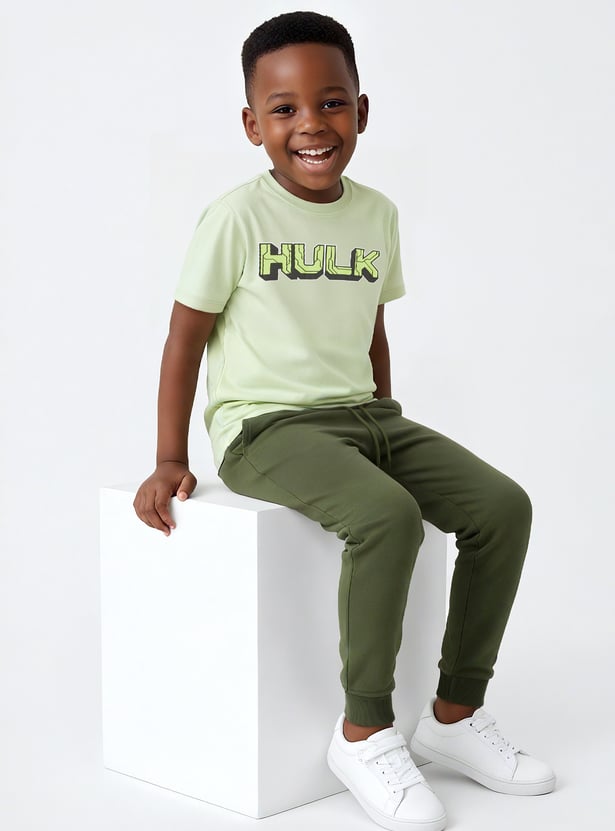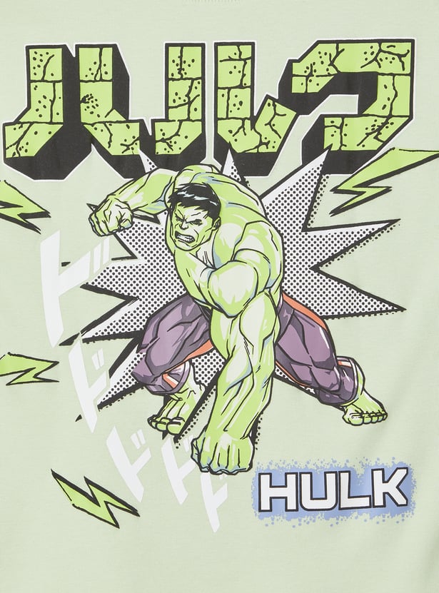 Show your superhero spirit with this Hulk print oversized T-shirt, featuring a classic crew neck and half sleeves for everyday comfort. Bold, fun, and perfect for casual wear.