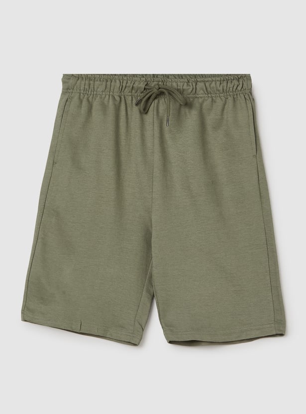 Relax in style with these solid knit shorts, featuring a comfortable drawstring closure for a customizable fit. Designed with insert pockets and a back pocket, they offer practical storage while maintaining a sleek and casual look.