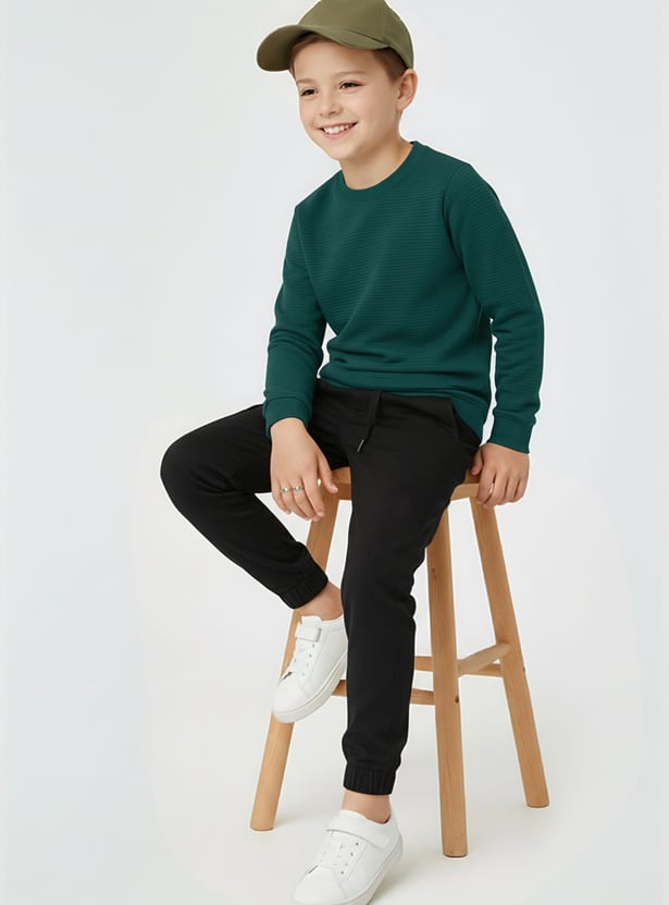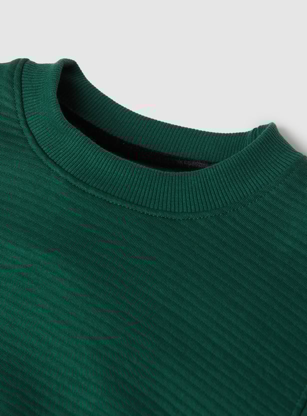 This knit sweatshirt features a classic crew neck, full sleeves, and a ribbed hem for a snug, structured finish. A go-to layer that delivers comfort and style in equal measure.