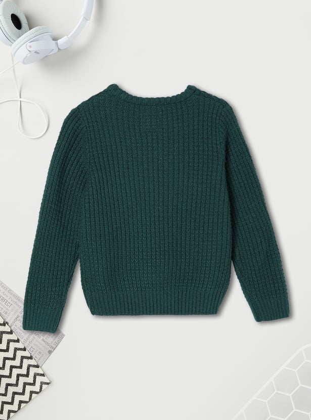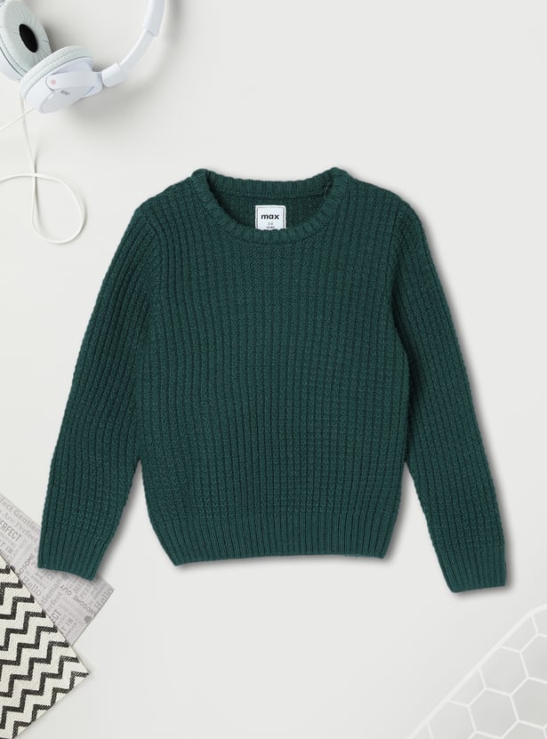 Induce comfort and style into your kid's winter wardrobe with this cosy knitted sweater. Featuring a crew neckline, ribbed hemline, and full sleeves, it ensures warmth and a snug fit, making it perfect for those chilly days.