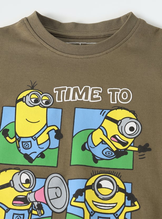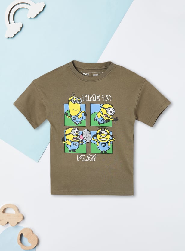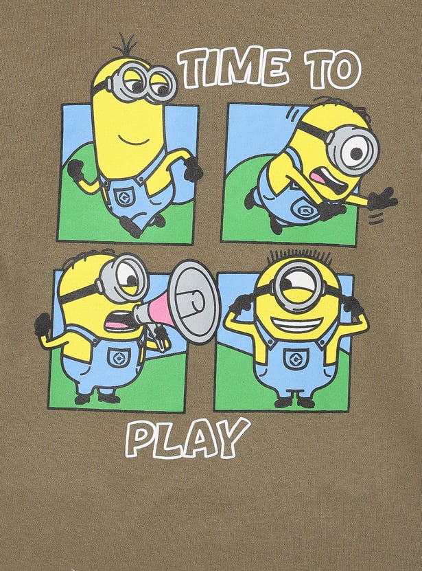 Add some fun to your wardrobe with this Minion print t-shirt! Featuring a classic crew neck and half sleeves, the playful Minion graphic brings a lighthearted touch to your casual look.