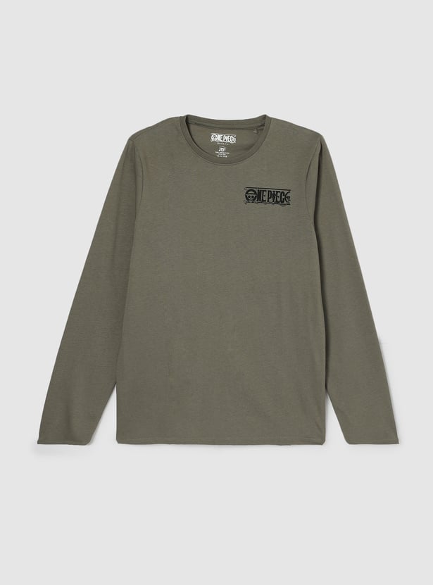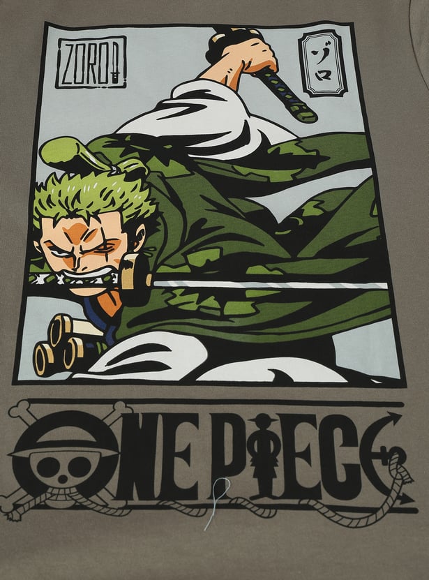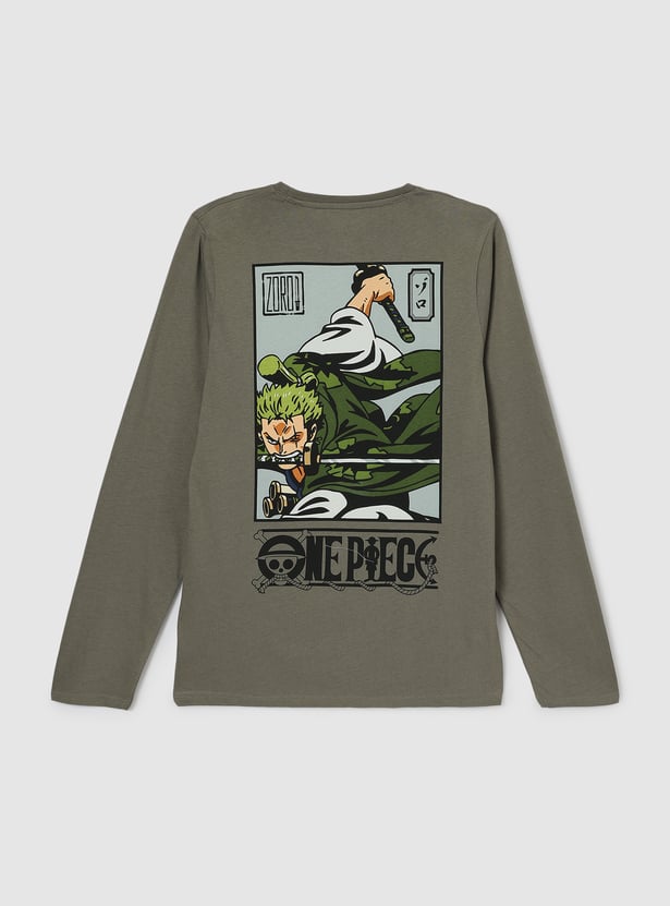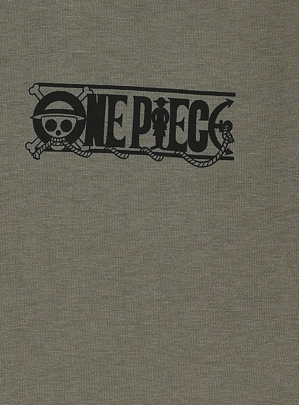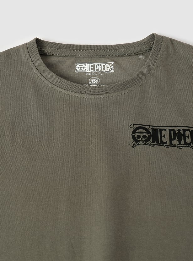 Level up your kid's streetwear game with this T-shirt. Showcasing bold One Piece prints on both the back and front, it features a classic crew neck and full sleeves for a relaxed fit. This tee is ideal for achieving that effortless, stylish look.