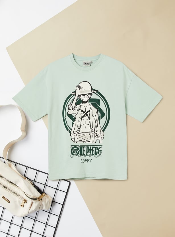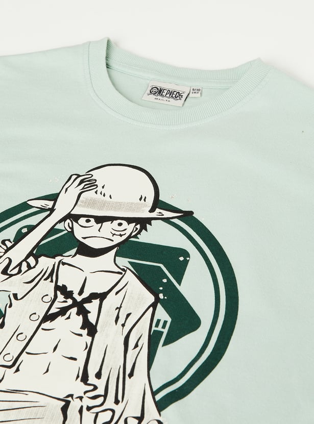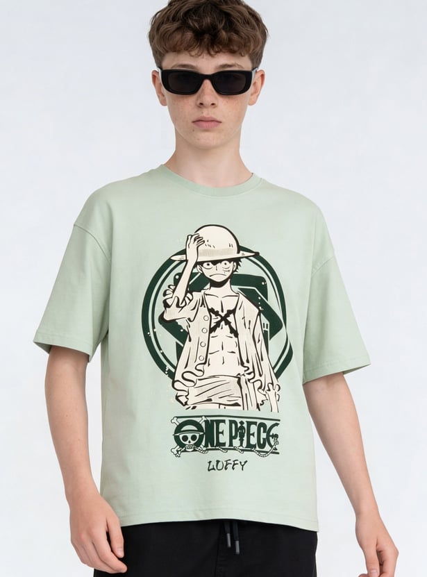 This boys' T-shirt features a striking One Piece character print, adding a fun vibe to casual wear. Crafted with a comfortable fit, it has a classic crew neckline and half sleeves. The intricate design details make it a standout piece for everyday styling.