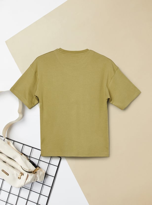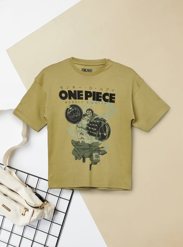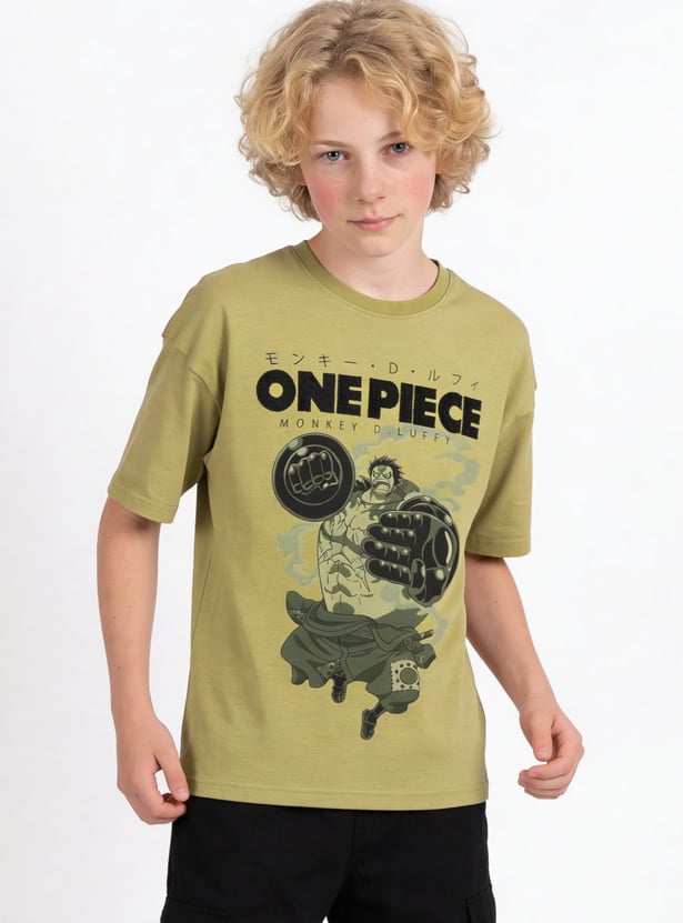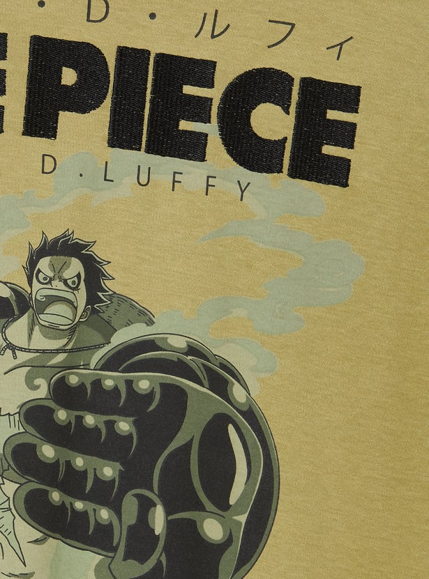Add anime-inspired style to his casual wardrobe with this oversized T-shirt. Designed with a crew neck and half sleeves for everyday comfort, it features Monkey D. Luffy embroidery on the chest.