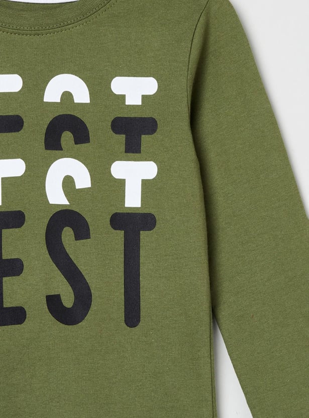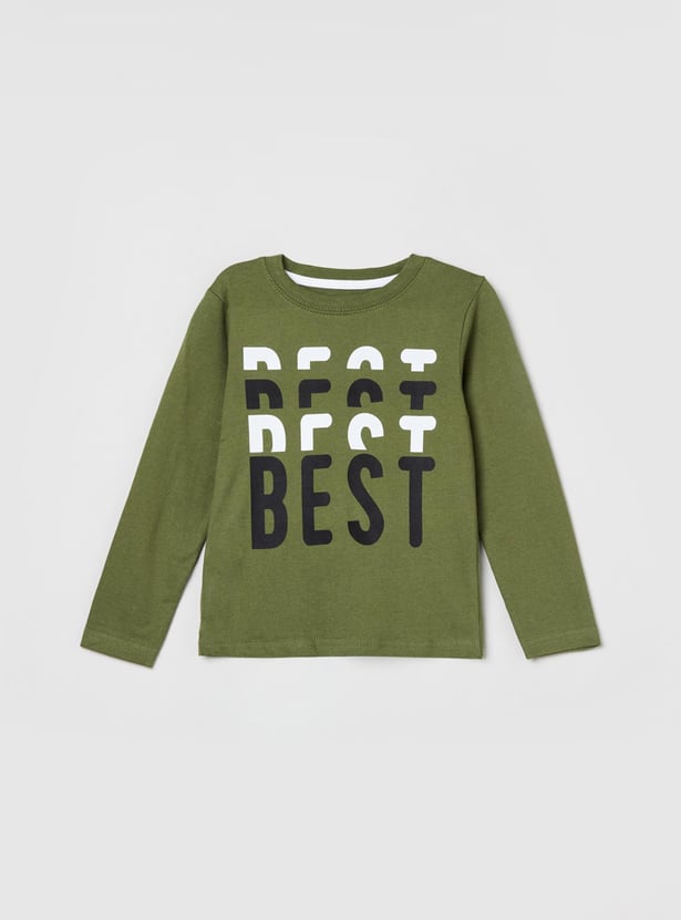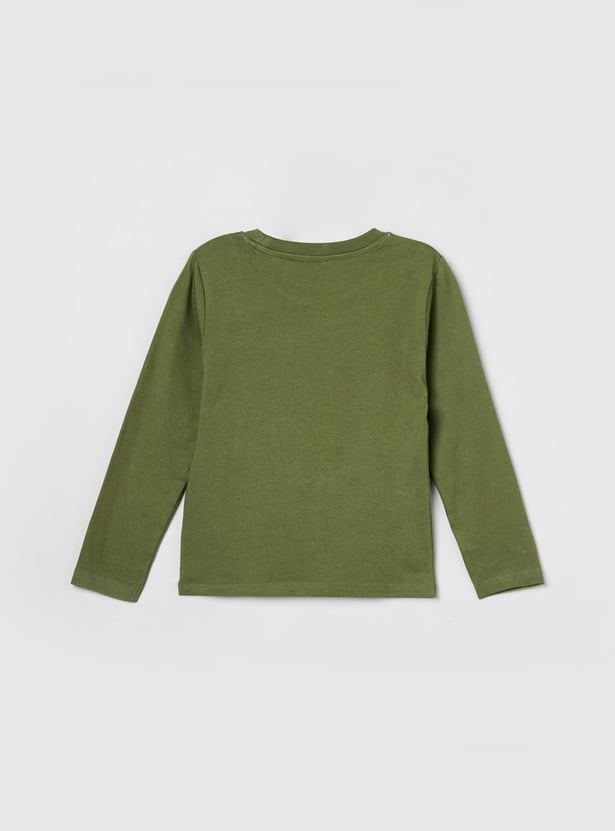 Give your little one a stylish look with this printed T-shirt. It is tailored with full sleeves and a crew neck.