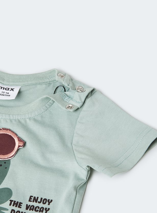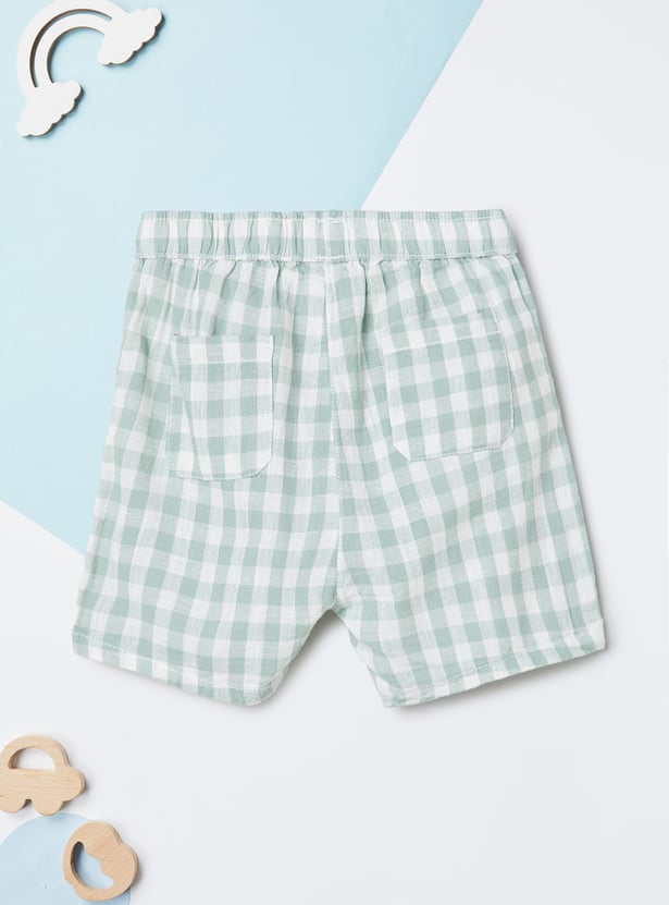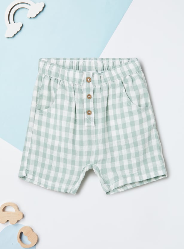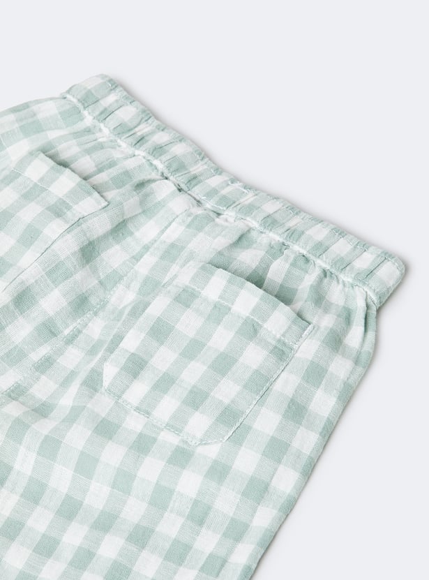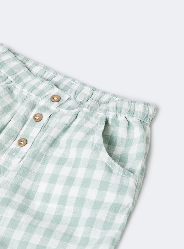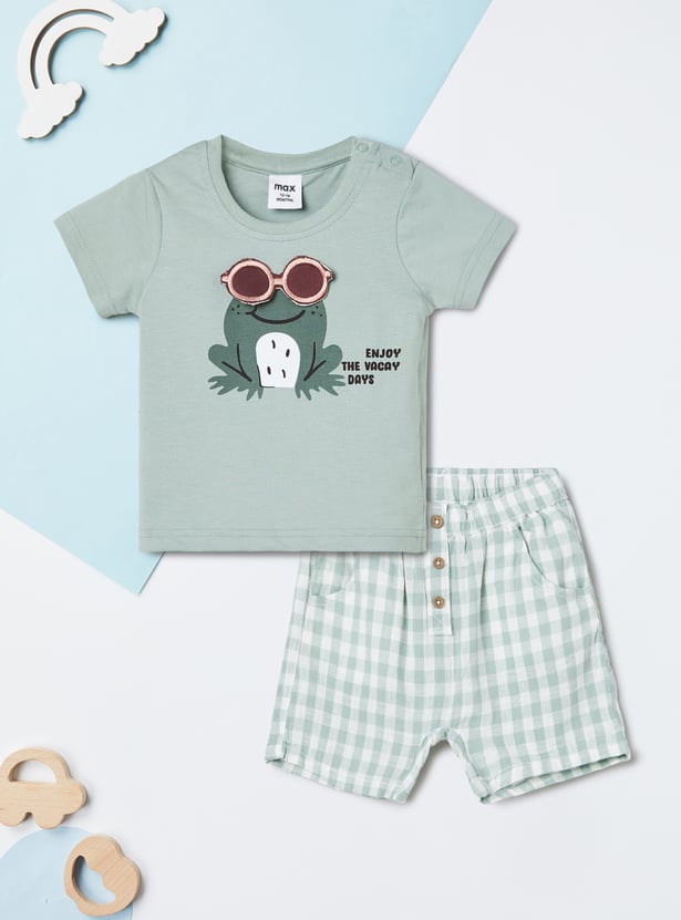 Bring effortless style to casual days with this printed shorts set, featuring a printed t-shirt with a classic crew neck, button closure, and half sleeves. It's paired with checked shorts designed with a button closure and functional pockets for everyday convenience.