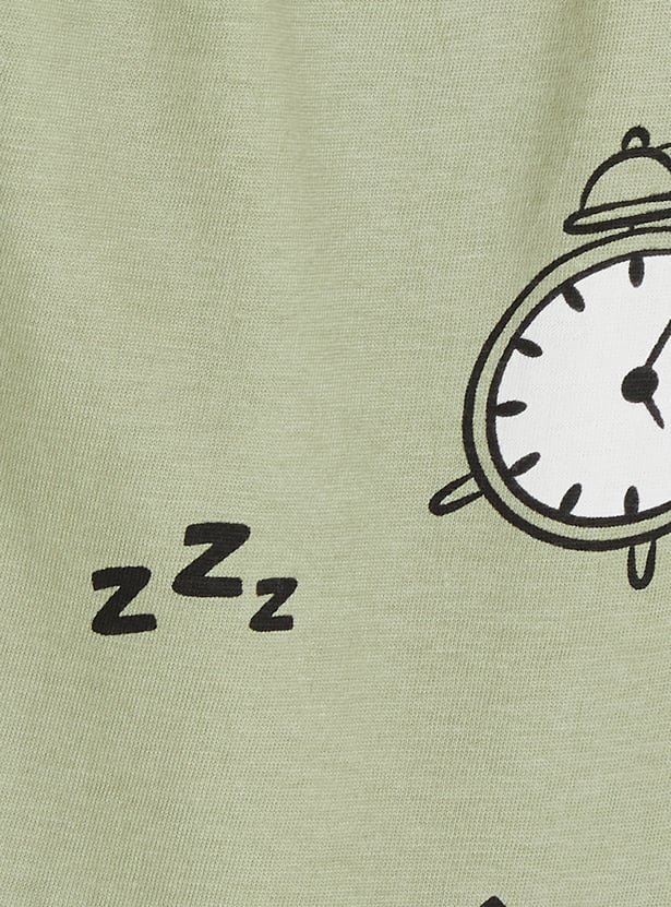 Let him stay cool and comfy with this printed shorts set, featuring a crew-neck, half-sleeve t-shirt for a relaxed fit and elasticated waist shorts for easy movement. Perfect for casual outings or lounging in style, this set blends playful charm with everyday comfort.