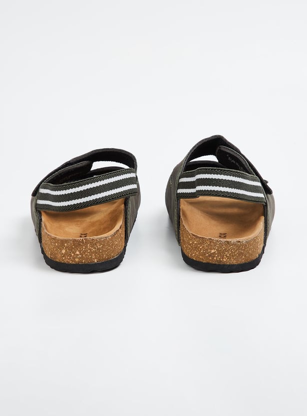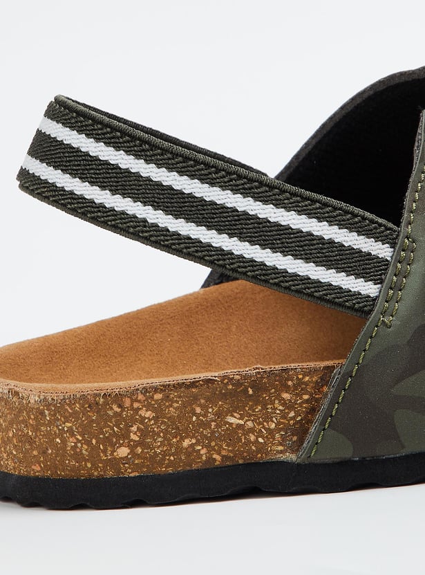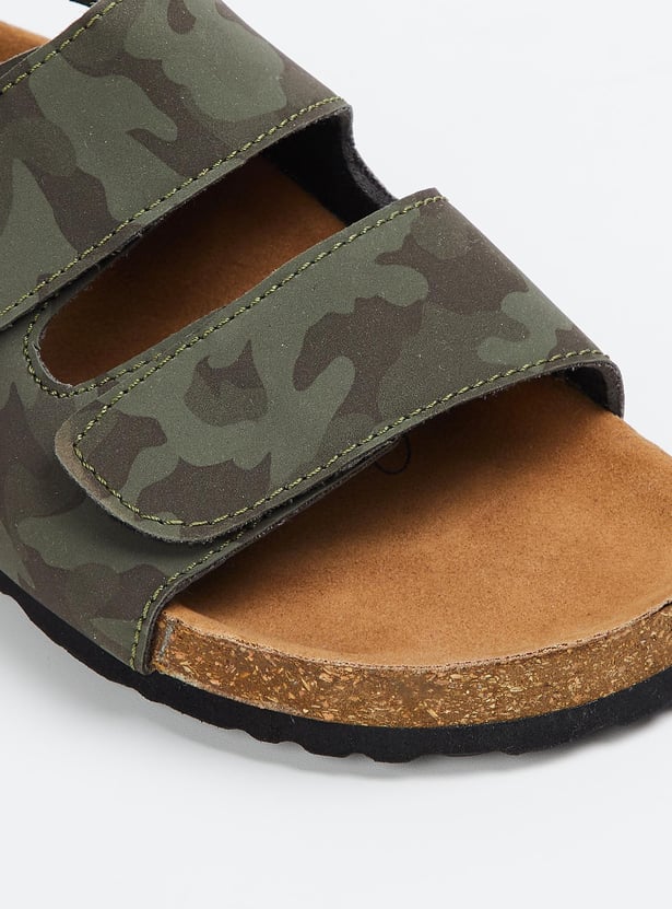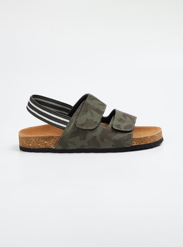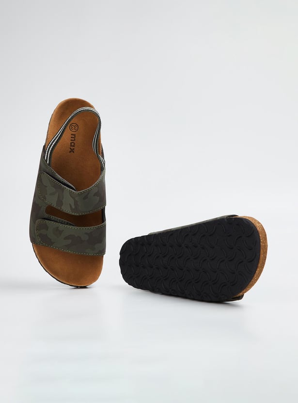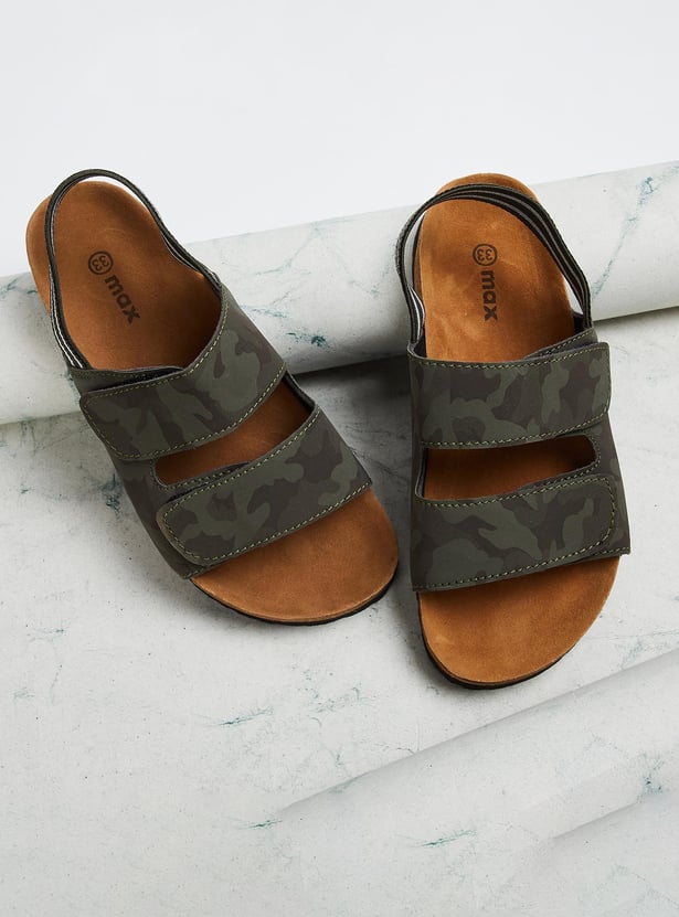 Perfect for his everyday adventures, this pair of sandals come with an ankle strap for a secure grip. It features a printed two-band upper with Velcro closures, open toe, contoured footbed, and grooved outsole for a secure grip.