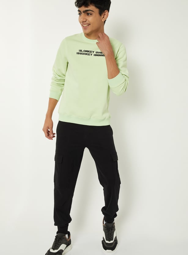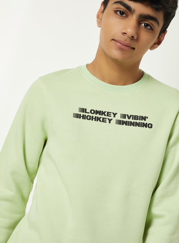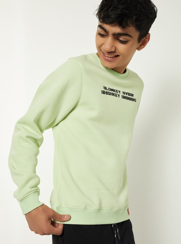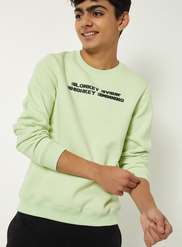Cozy up in this soft knit printed sweatshirt, featuring a classic crew neck, full sleeves, and a ribbed hem for a snug, comfortable fit. Perfect for layering on chilly days.