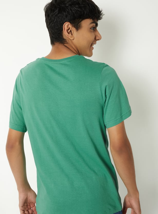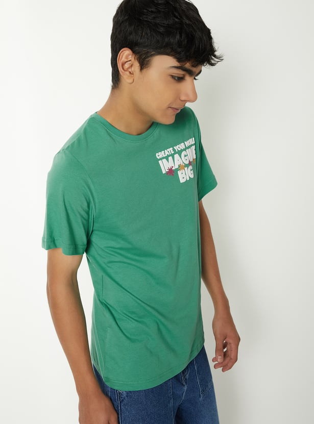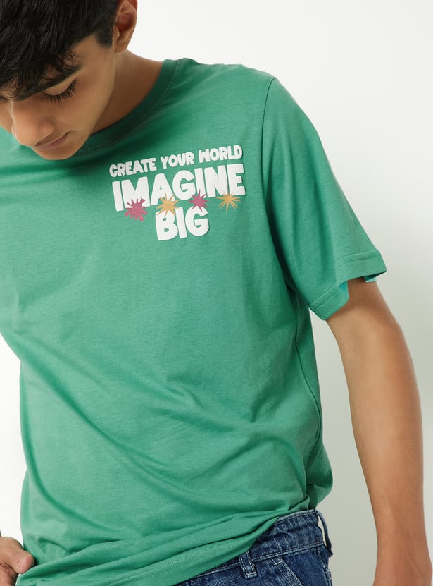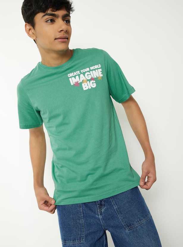 Keep it casual and cool with this printed t-shirt, featuring a classic crew neck and half sleeves for everyday comfort.