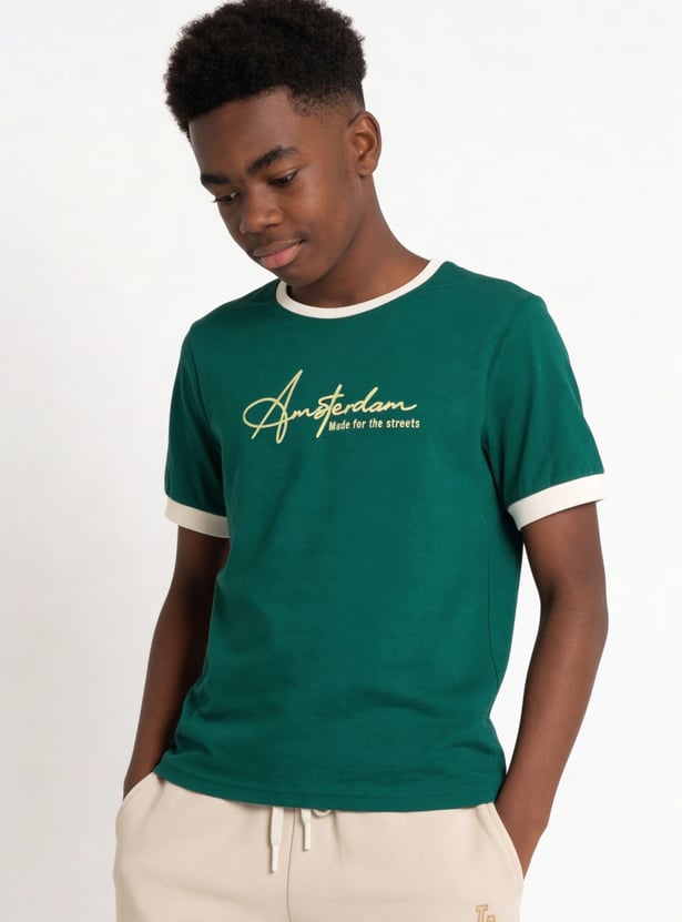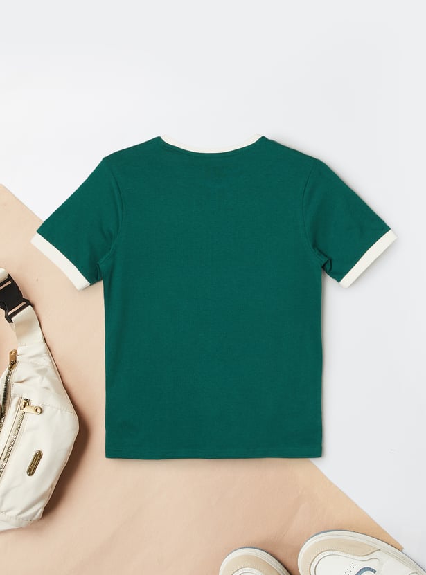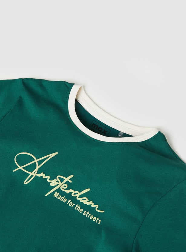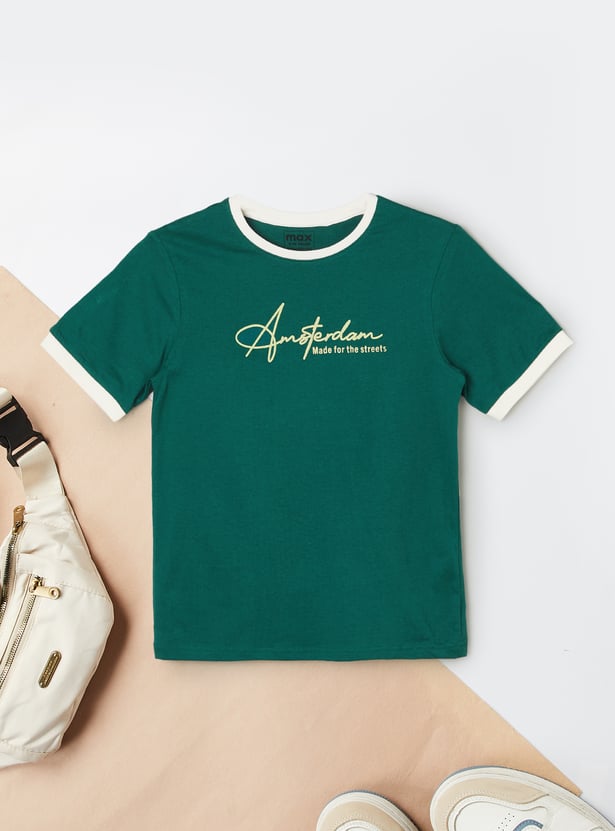Casual and versatile, this printed T-shirt features a crew neckline and half sleeves. The soft fabric ensures all-day comfort, while the printed design adds a stylish edge to your everyday wardrobe.