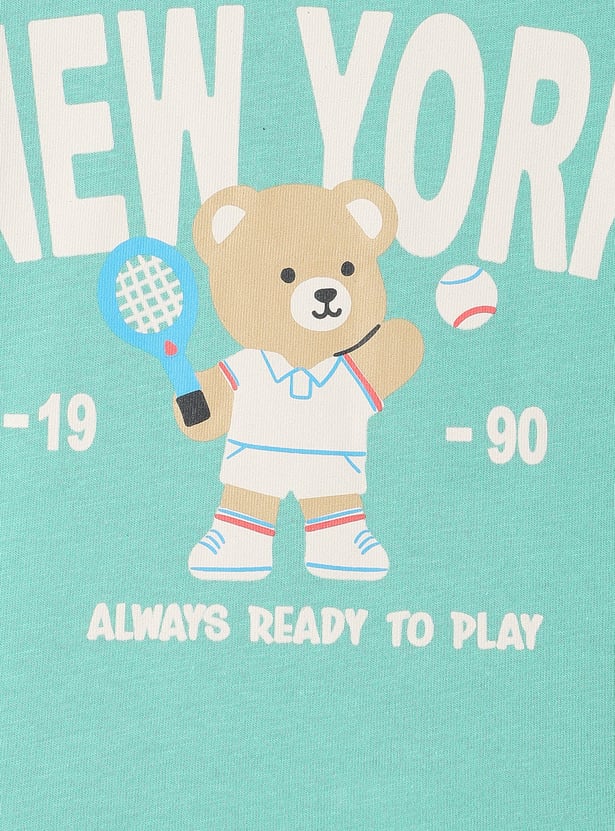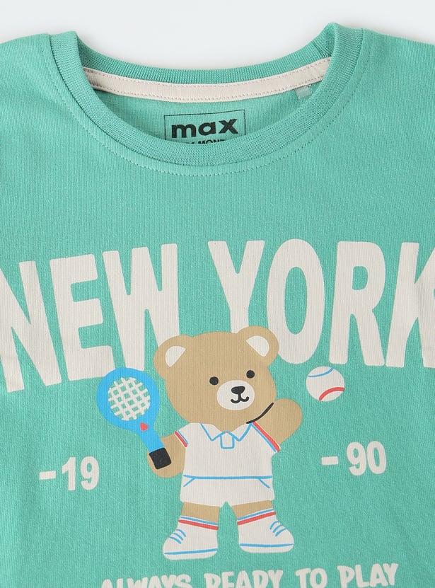 This printed T-shirt brings a touch of fun to your wardrobe with its eye-catching design. Featuring a crew neck and half sleeves, it’s the perfect balance of comfort and style.