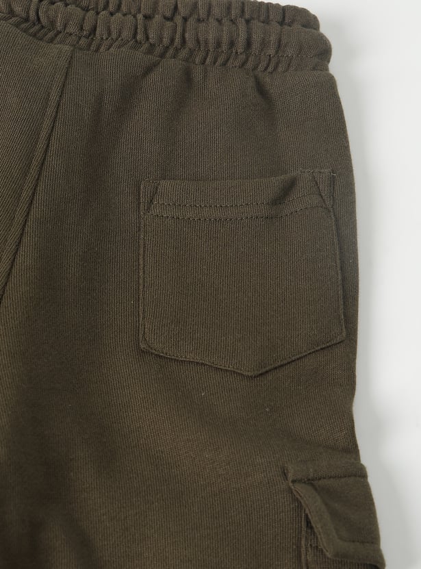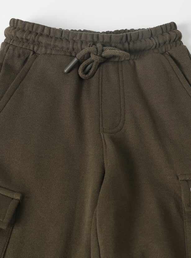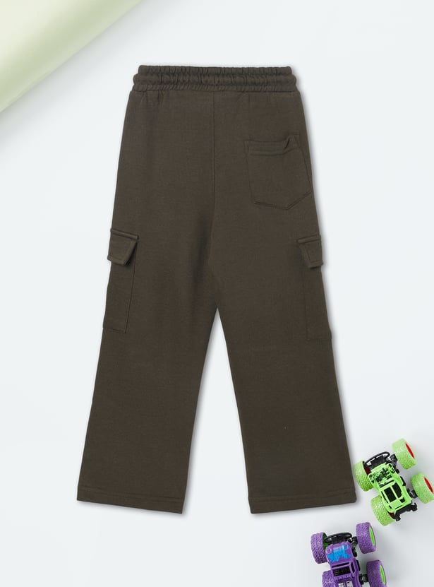 These boys’ solid cargo trousers combine comfort and utility for everyday wear. Designed with an elasticated waist and adjustable drawstring for a secure fit, they feature five functional pockets that add a cool, rugged touch.