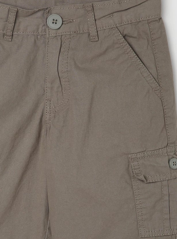 Elevate game time to a comfortable session with this pair of Bermuda shorts. It is designed with a solid surface, button closure, and pockets.