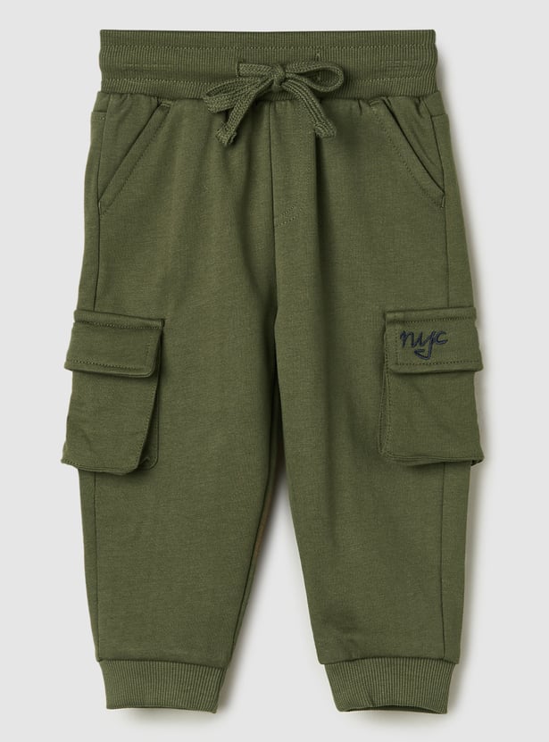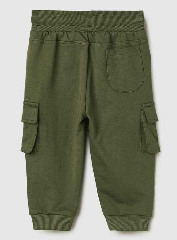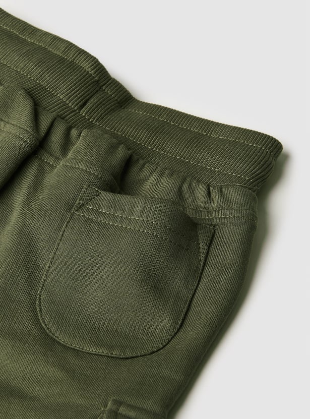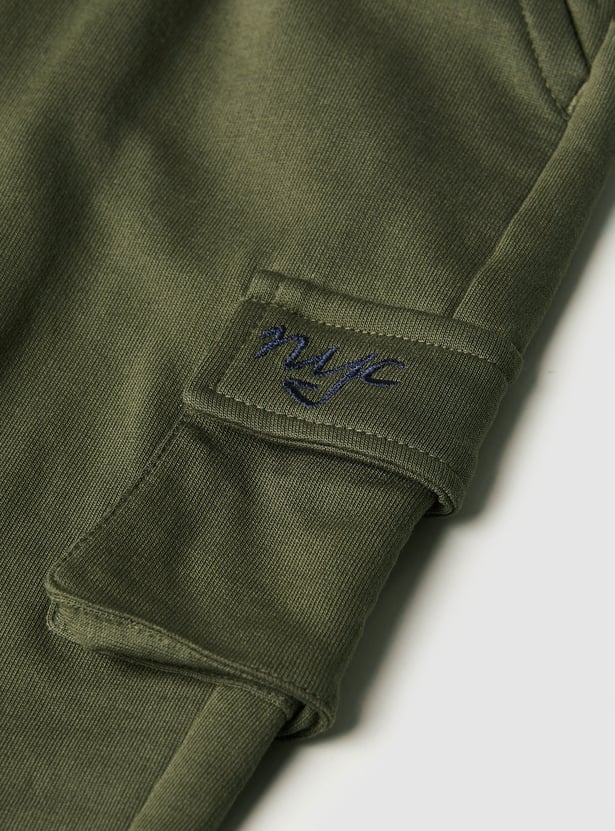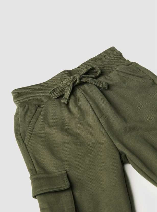 Boys Solid Joggers Trousers with Cargo Pockets