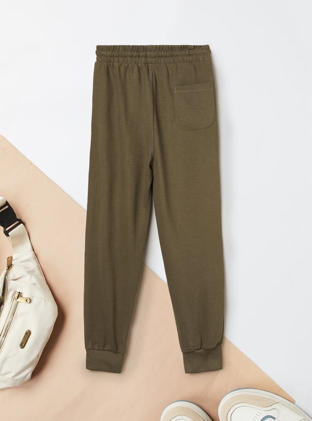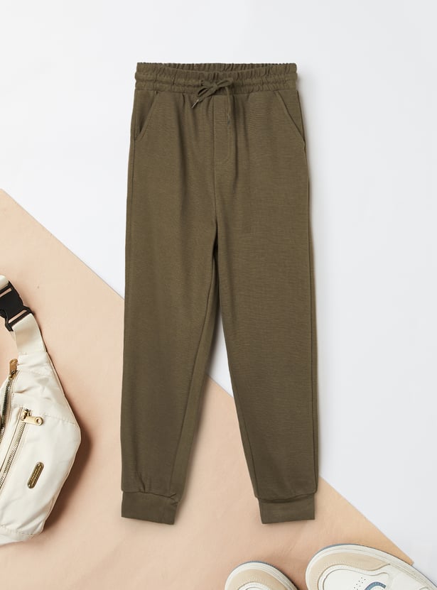 Stay comfortable and on-trend with these textured joggers, featuring a drawstring closure for an adjustable fit and handy pockets for everyday convenience. Perfect for lounging or casual outings.