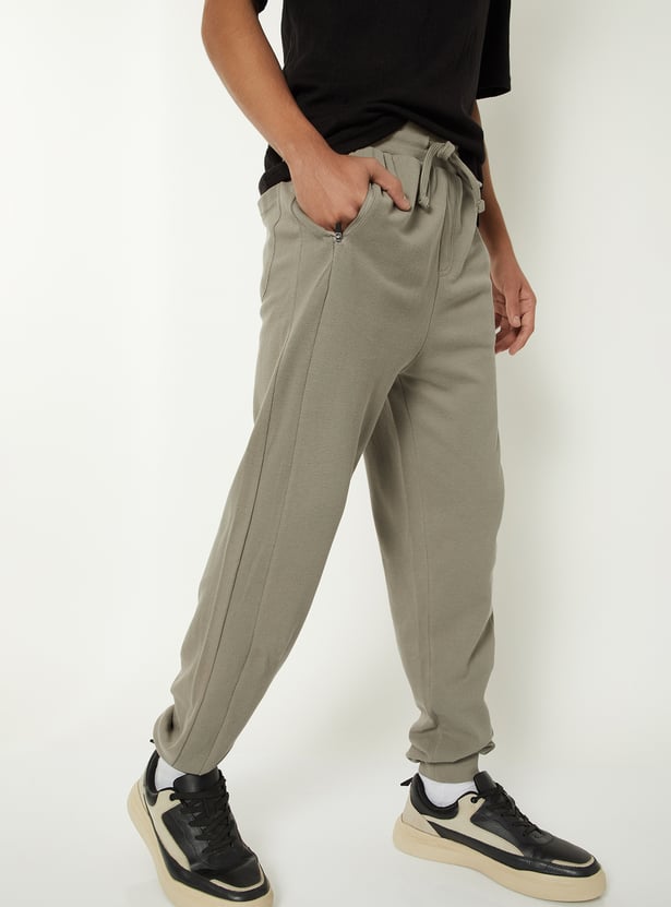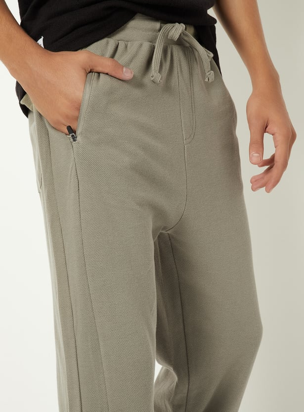 Stay comfortable and on the move in these textured joggers, featuring a drawstring closure for a custom fit and zip pockets to keep your essentials secure.
