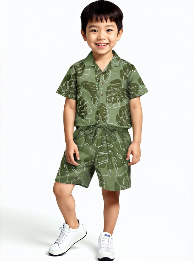 Watch your little boy chase rainbows and giggles with this casual shorts featuring tropical printed surface with elasticated waistband with drawstring closure and pockets for tiny treasures. These shorts are ideal for playground races to backyard picnics.