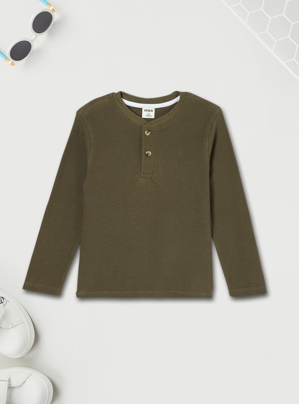 Boys Waffle Knit Henley Neck T-shirt