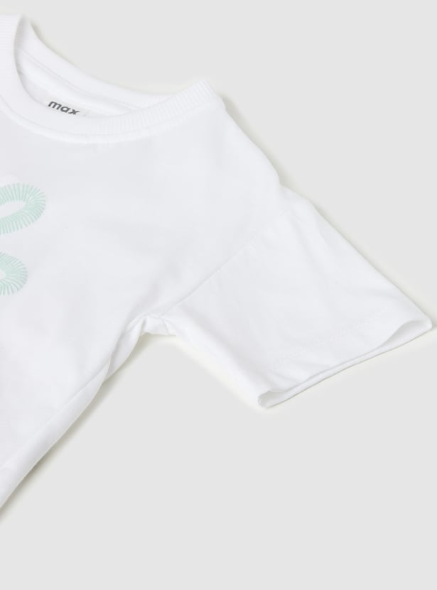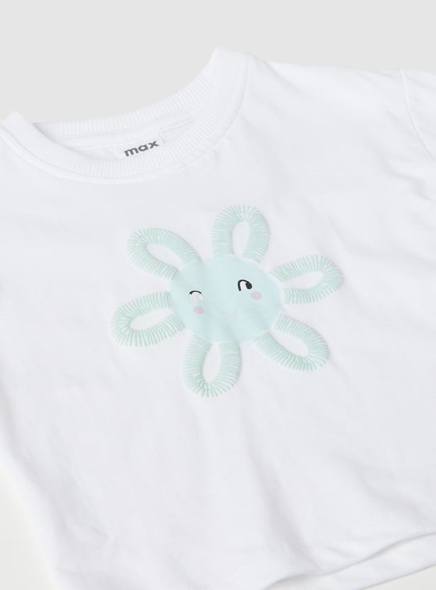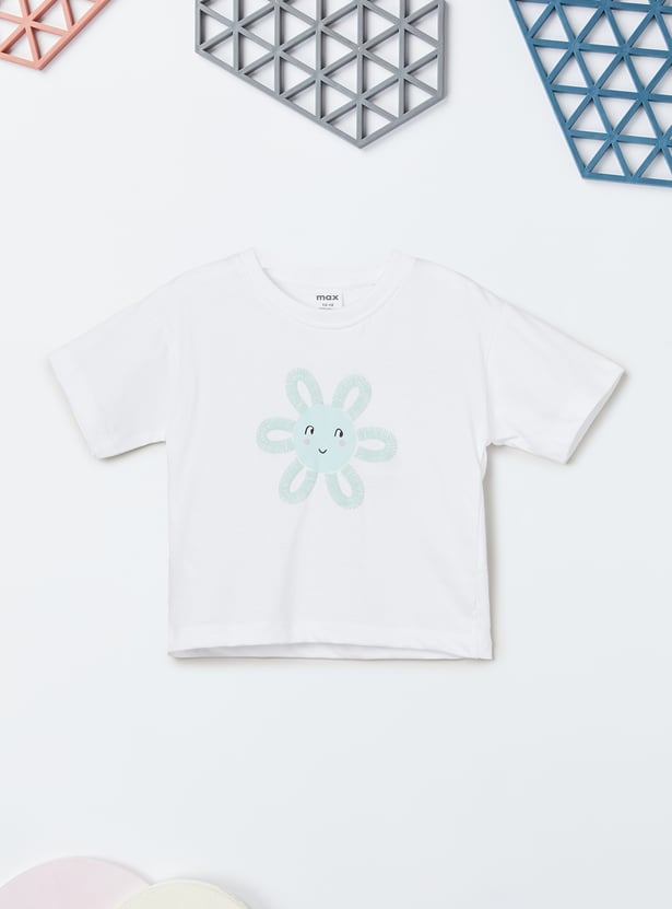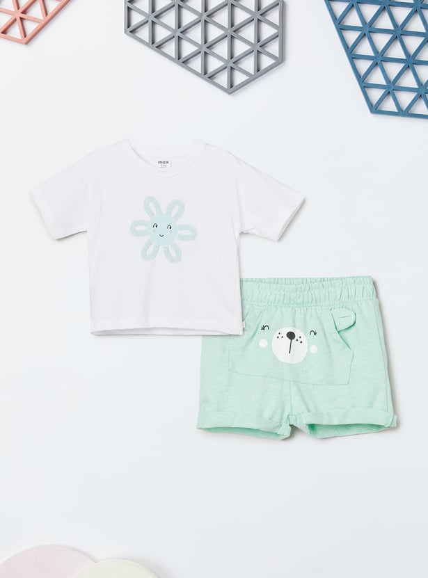 Keep it playful and comfy with our applique shorts set — features a round neck, half sleeve T-shirt paired with shorts detailed with fun applique work.