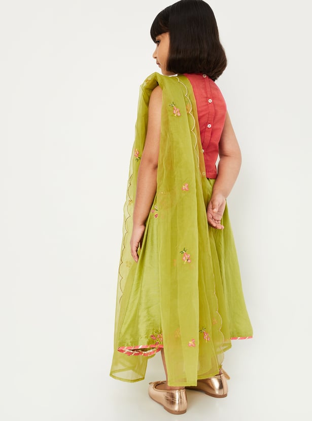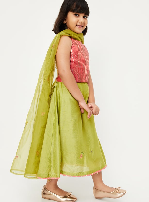 Girls Embellished Blouse with Lehenga and Dupatta