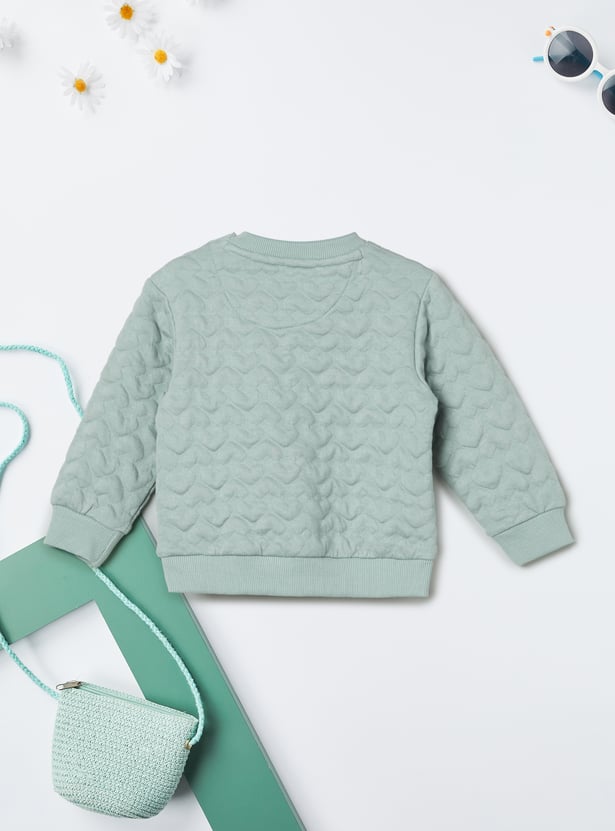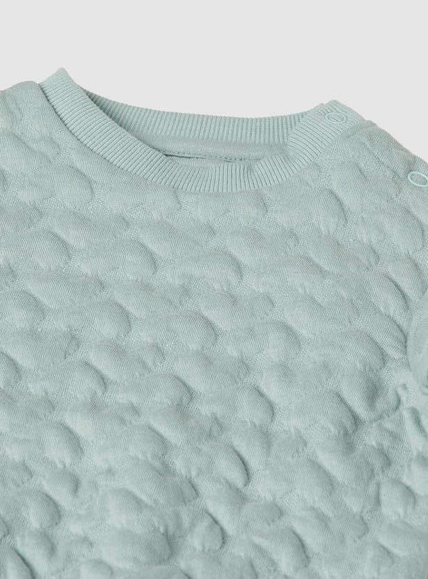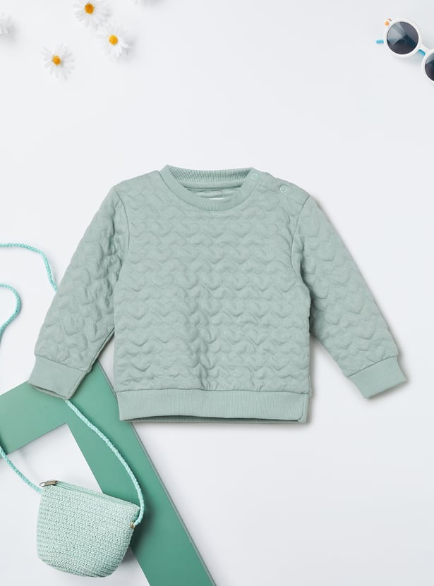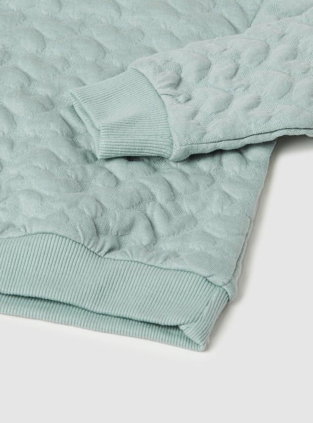 Stay warm and stylish with this embossed sweatshirt. Featuring a crew neck, full sleeves, and a ribbed hem, it combines cosy comfort with a modern look.