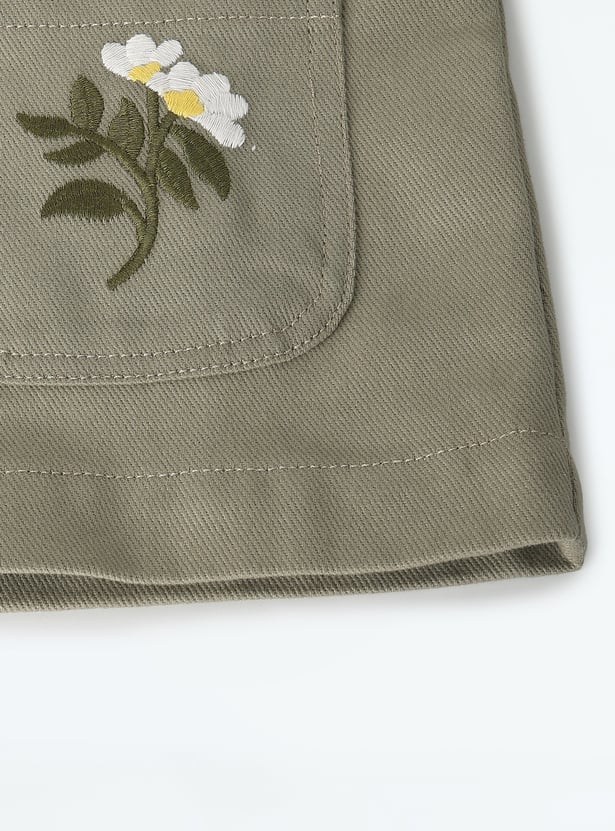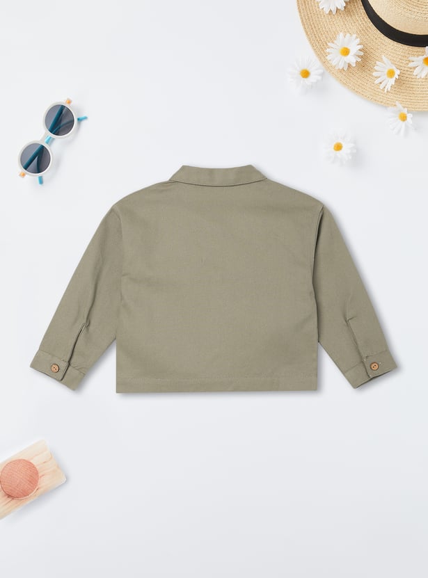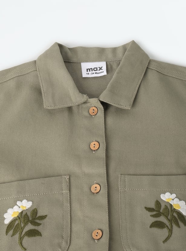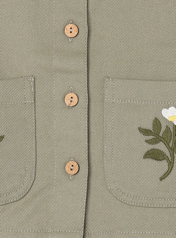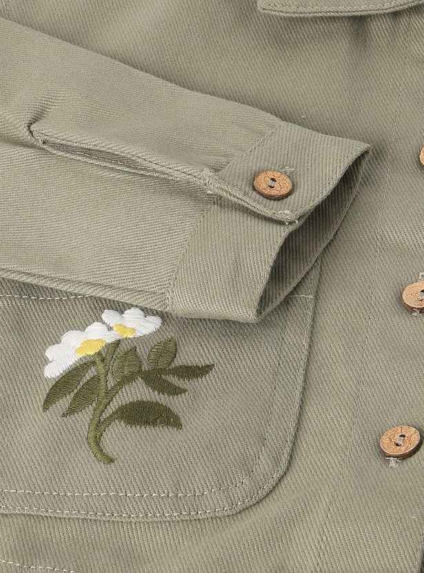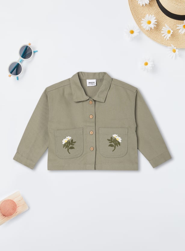 Stay effortlessly cool in this versatile embroidered shirt! Featuring a button placket, functional front pockets, and full sleeves with button cuffs, it’s the perfect blend of casual and chic.
