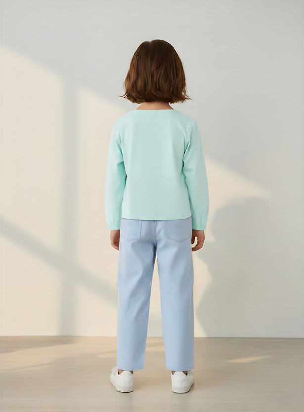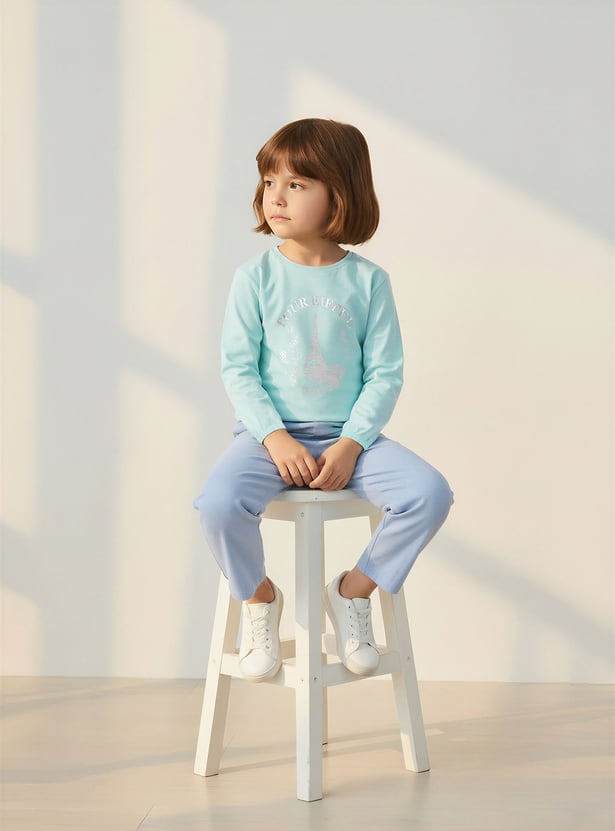 Add a playful touch to your wardrobe with this foil print top, featuring a round neck and cuffed full sleeves for a comfy, stylish fit. Perfect for casual days with a hint of charm.