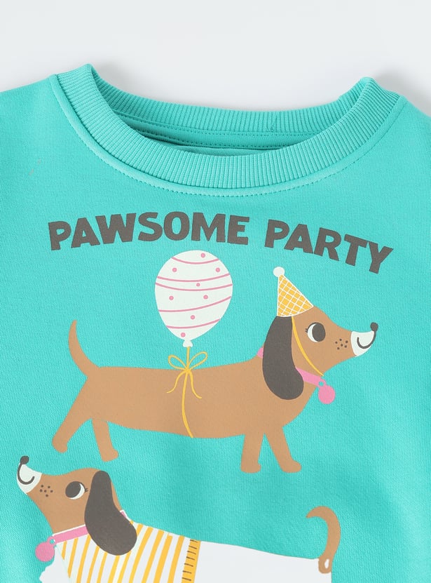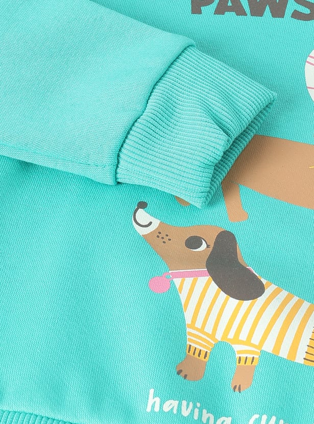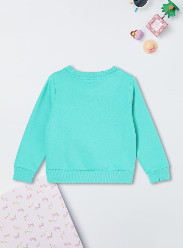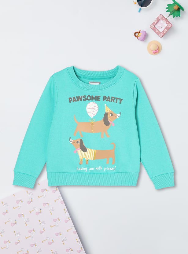 Keep your kid warm and cosy in this sweatshirt while they head out to play during the winter. It features a charming print, a round neckline, full sleeves, and a ribbed hem, making it both comfortable and fun, sure to spark a smile on your little one.